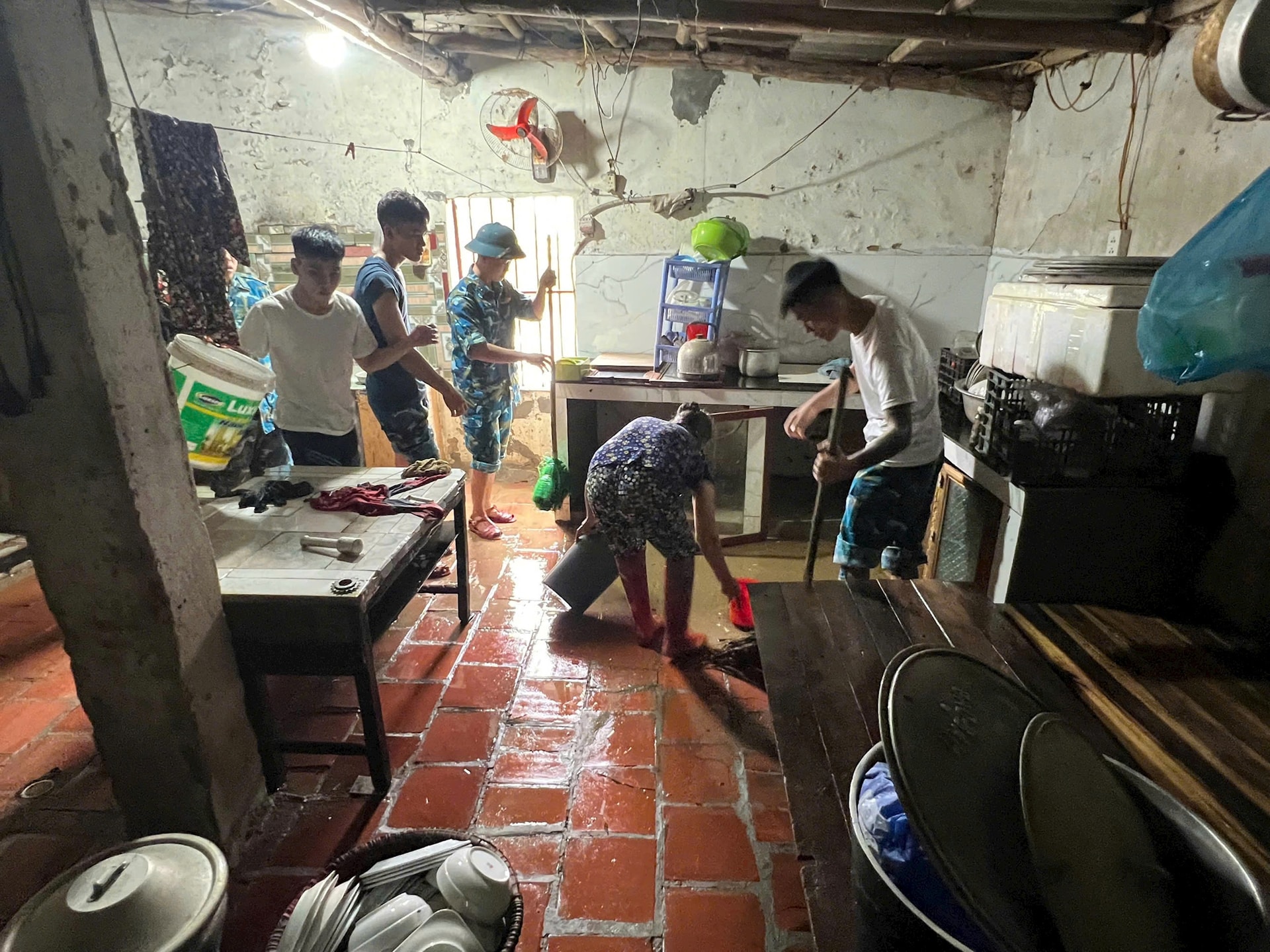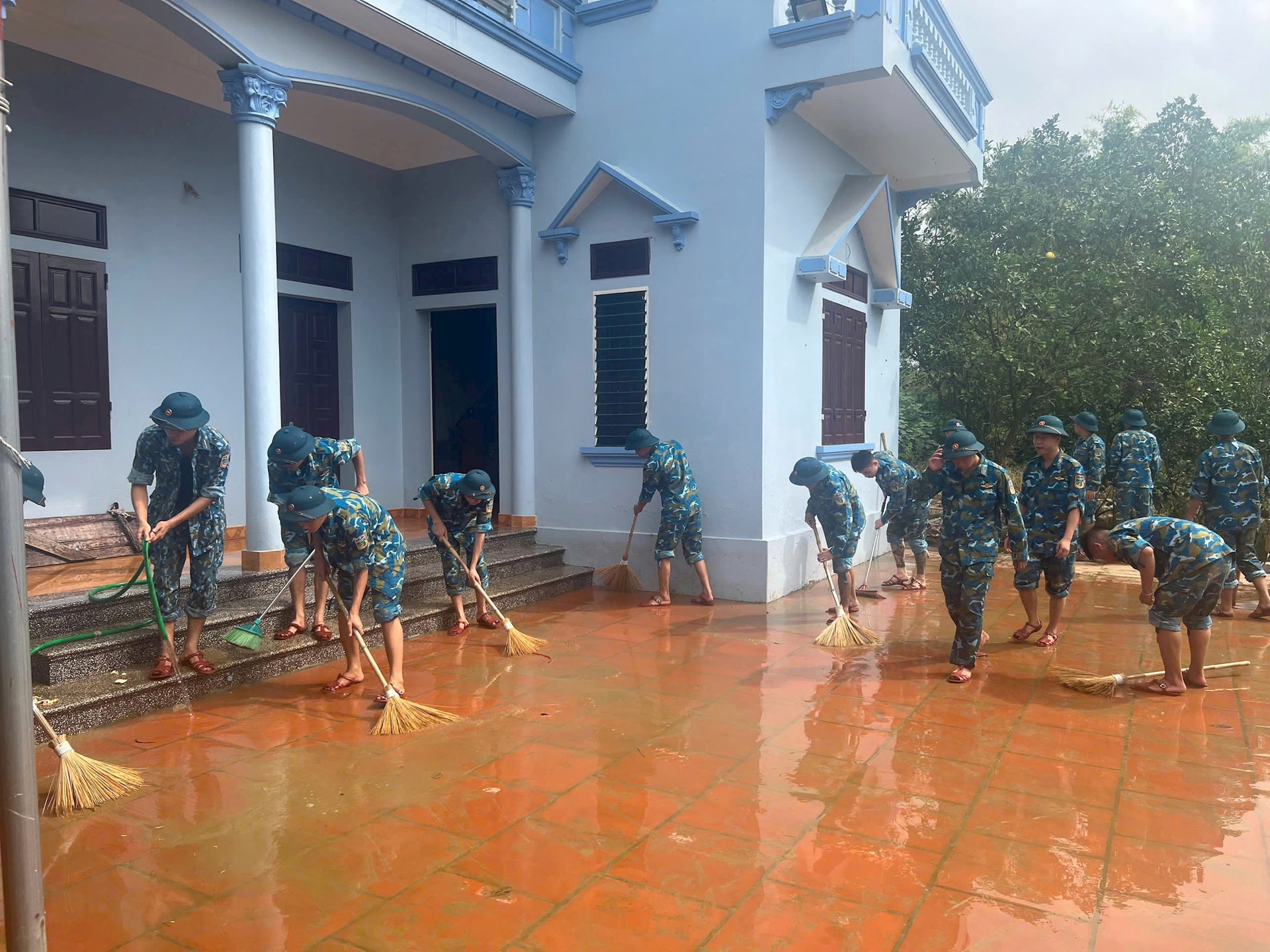 Cán bộ, chiến sĩ Sư đoàn 371 vệ sinh giúp các gia đình sau bão. Ảnh: Trần Thứ