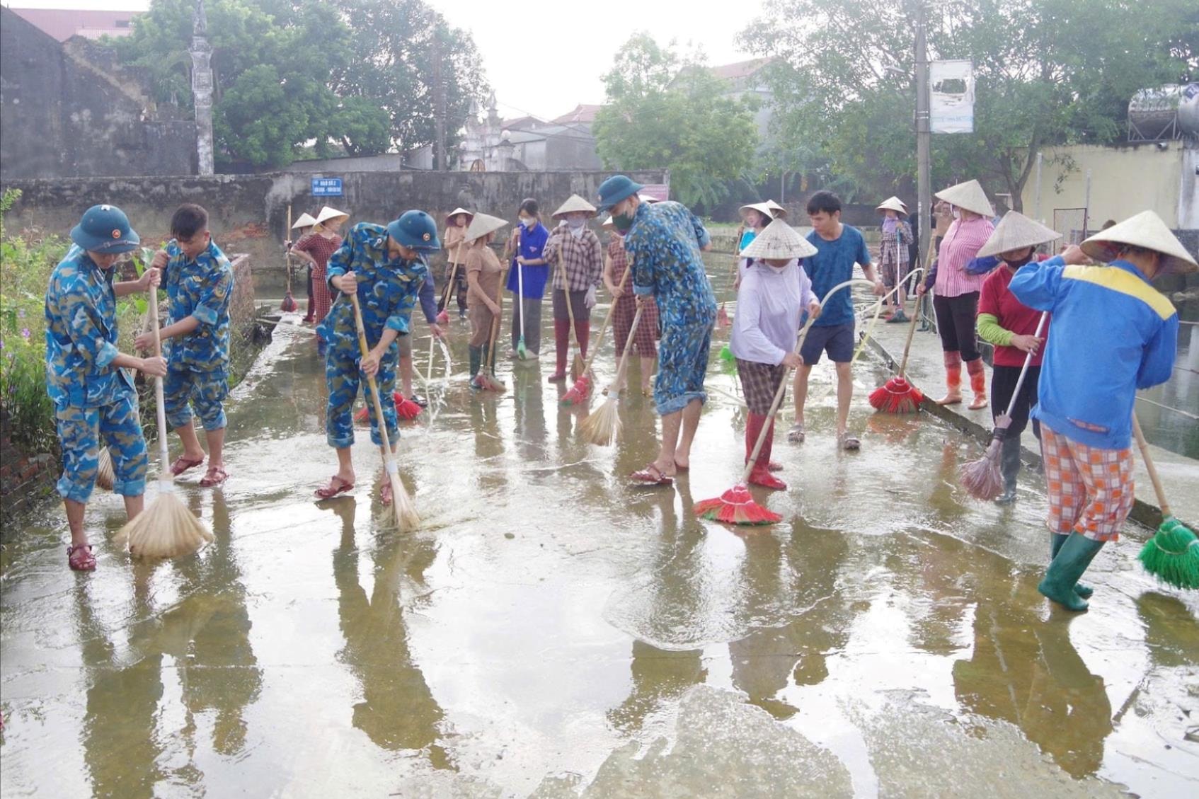 Cán bộ, chiến sĩ Sư đoàn 371 đã cùng các lực lượng trên địa bàn xã khẩn trương dọn dẹp, cưa cắt những cây bị bật gốc, đổ chắn ngang các trục đường; thu gom rác thải, cành cây đổ; vệ sinh môi trường, khơi thông cống rãnh thoát nước; hỗ trợ các hộ gia đình bị thiệt hại do bão gây ra.