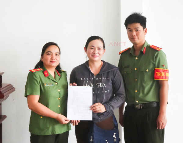 Nhận lại tiền, chị N. gửi lời cảm ơn Đại úy Huỳnh Thị Thoa cùng tập thể Phòng An ninh mạng và phòng chống tội phạm sử dụng công nghệ cao Công aan TP Cần Thơ.