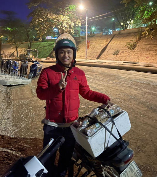 Tuy đã tối muộn nhưng Thắng vẫn đi giao đũa cho khách hàng