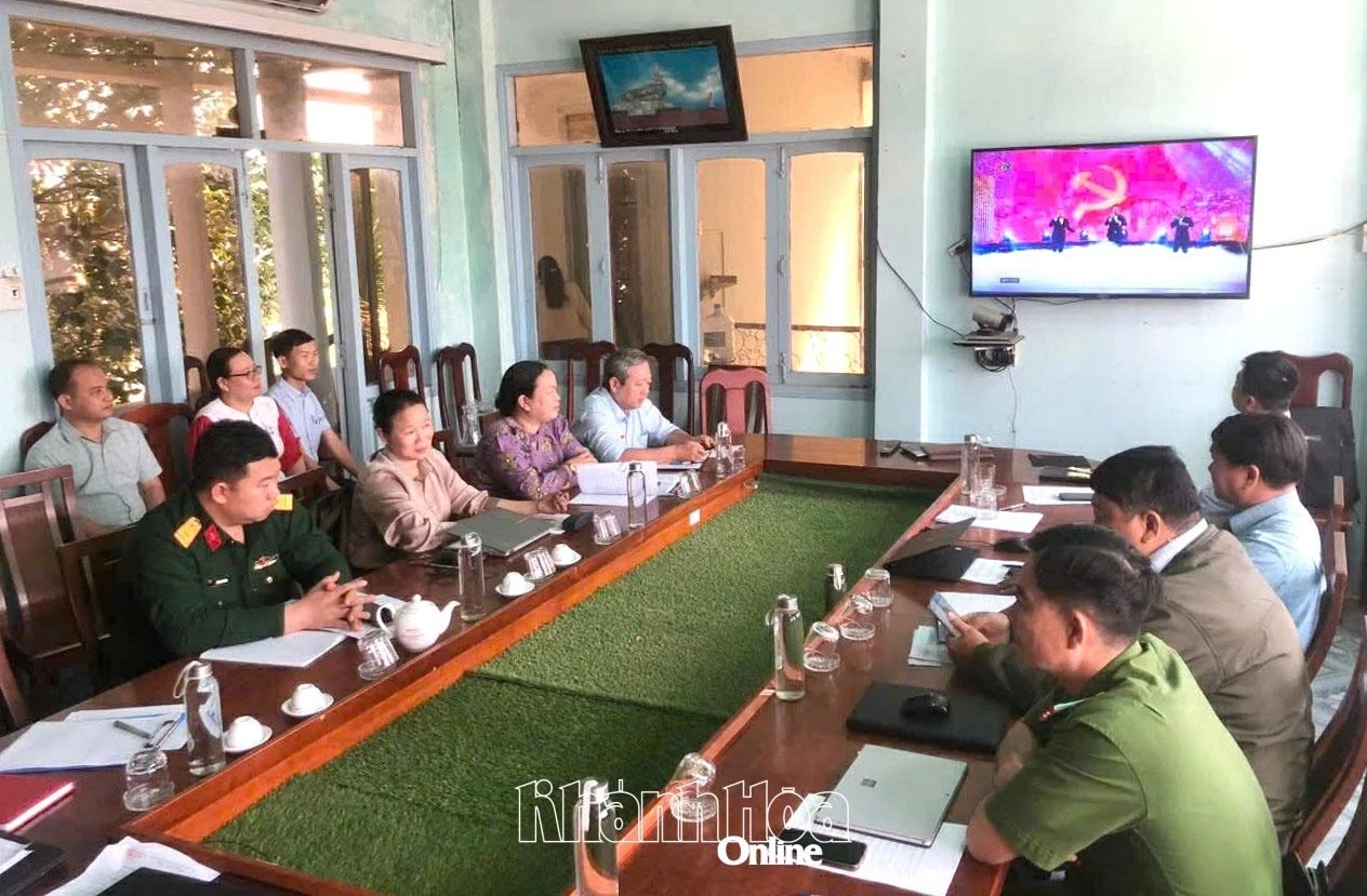 Đảng viên Đảng bộ xã Khánh Sơn theo dõi trực tiếp phiên khai mạc đại hội. Ảnh: Thanh Long.