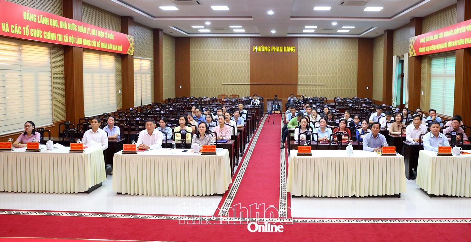 Cán bộ, đảng viên phường Phan Rang xem chương trình khai mạc Đại hội. Ảnh: Văn Nỷ.