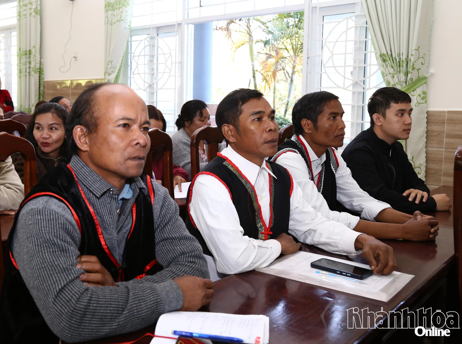 Đảng viên người đồng bào dân tộc thiểu số Raglai Chi bộ thôn Hạp Thịnh (xã Khánh Sơn) chăm chú theo dõi phiên khai mạc đại hội. Ảnh: Thanh Long.