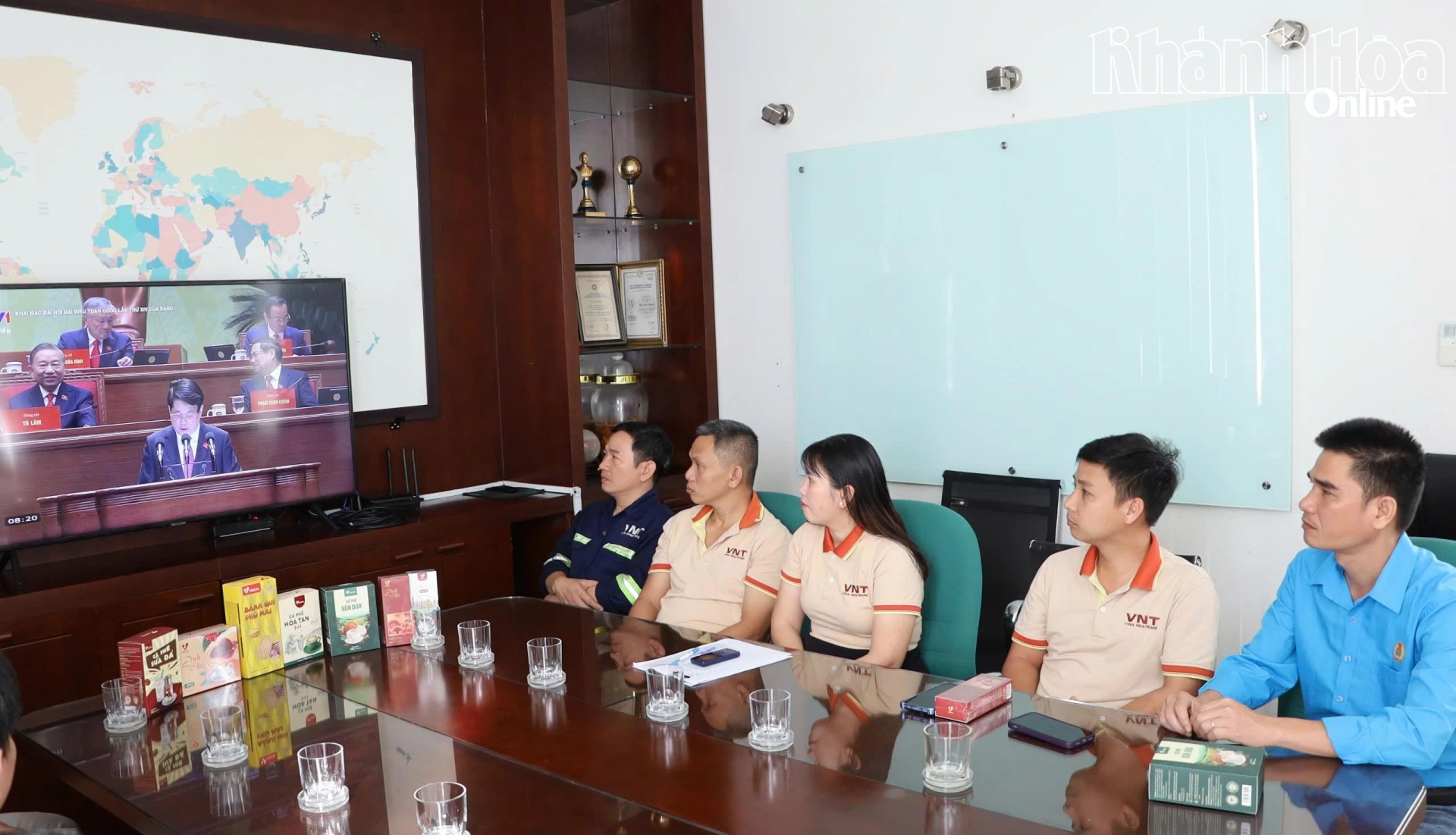 Công ty TNHH Nhà nước Một thành viên Yến sào Khánh Hòa tổ chức cho cán bộ, nhân viên, người lao động theo dõi truyền hình trực tiếp phiên khai mạc Đại hội XIV của Đảng. Ảnh: Văn Giang.