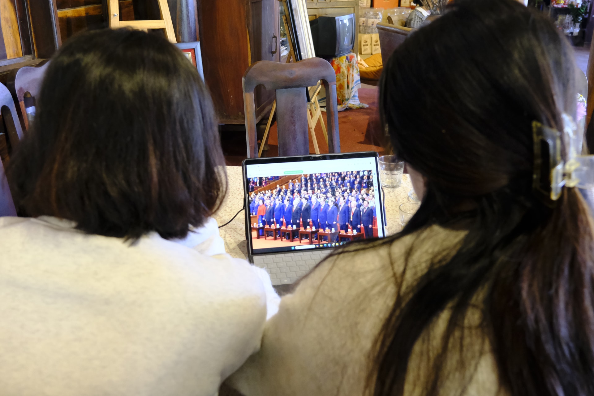 Người dân tổ dân phố 2 Chi Lăng, phường Lâm Viên - Đà Lạt, tỉnh Lâm Đồng theo dõi phiên khai mạc Đại hội XIV của Đảng. Ảnh: Văn Chinh