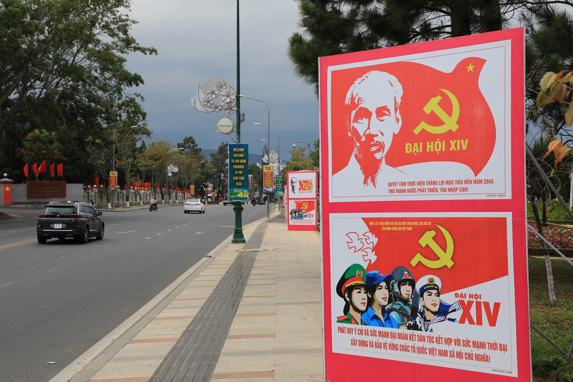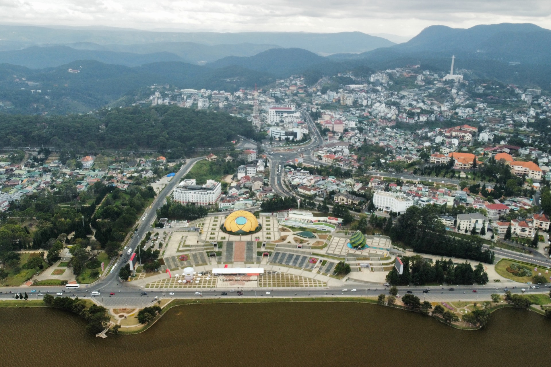 Một góc trung tâm đô thị Đà Lạt, tỉnh Lâm Đồng trong sáng ngày khai mạc Đại hội XIV của Đảng. Ảnh: Lê Phước