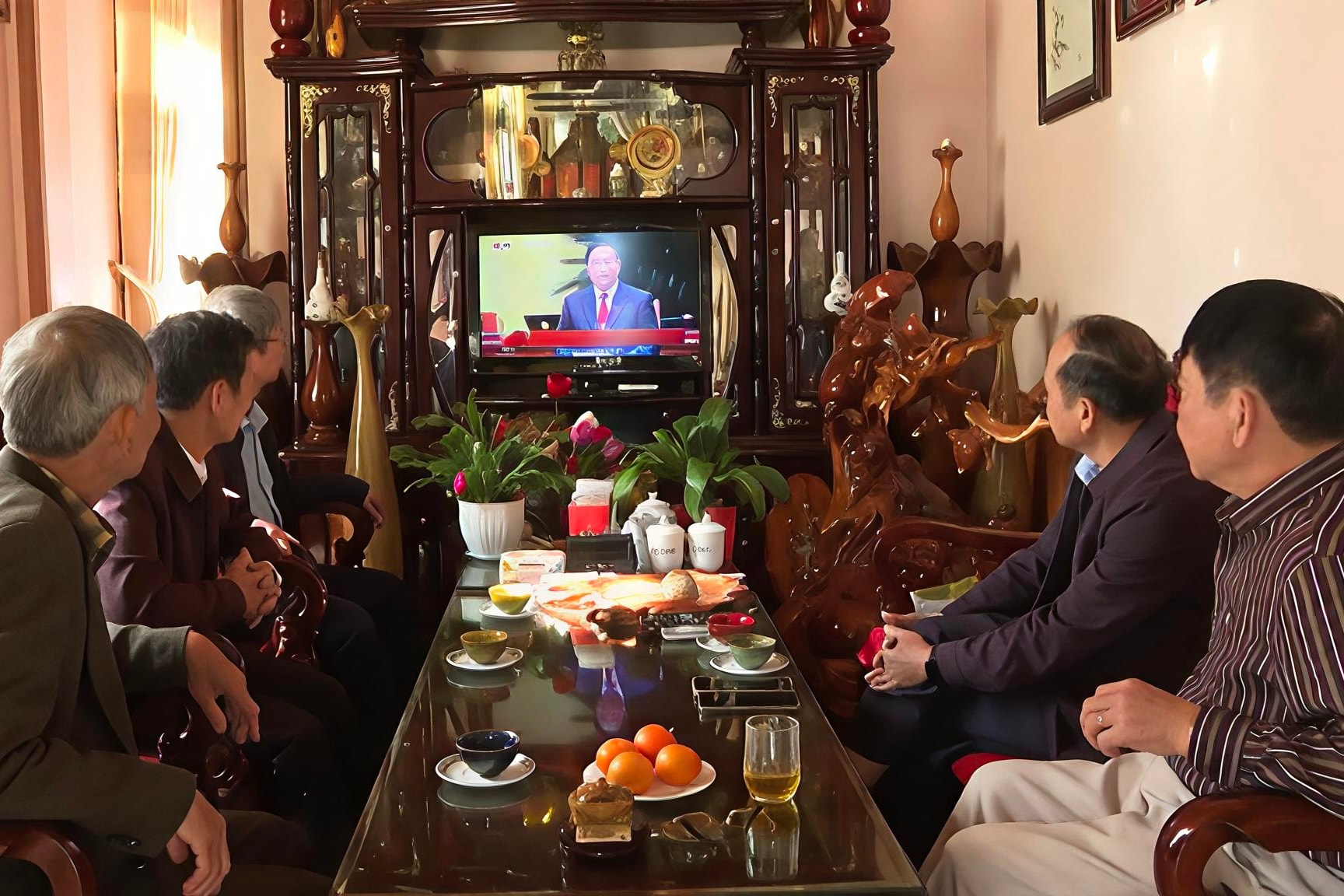 Người dân xã Cát Tiên, tỉnh Lâm Đồng theo dõi trực tiếp phiên khai mạc Đại hội XIV của Đảng. Ảnh: Hoàng Sa