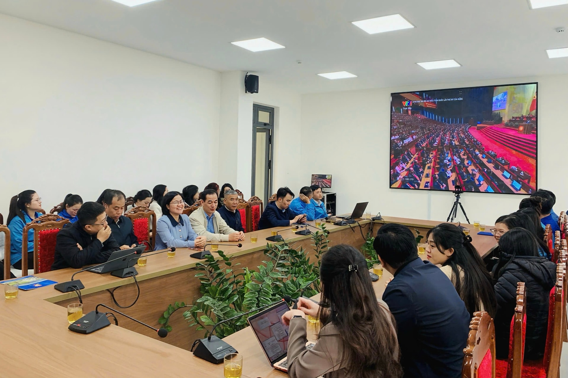 Báo và Phát thanh, Truyền hình Lâm Đồng tổ chức cho toàn thể cán bộ, đảng viên, viên chức, người lao động và cộng tác viên theo dõi phiên khai mạc Đại hội XIV của Đảng. Ảnh: Duy Minh