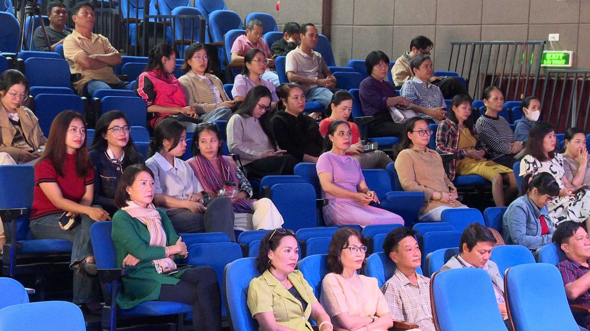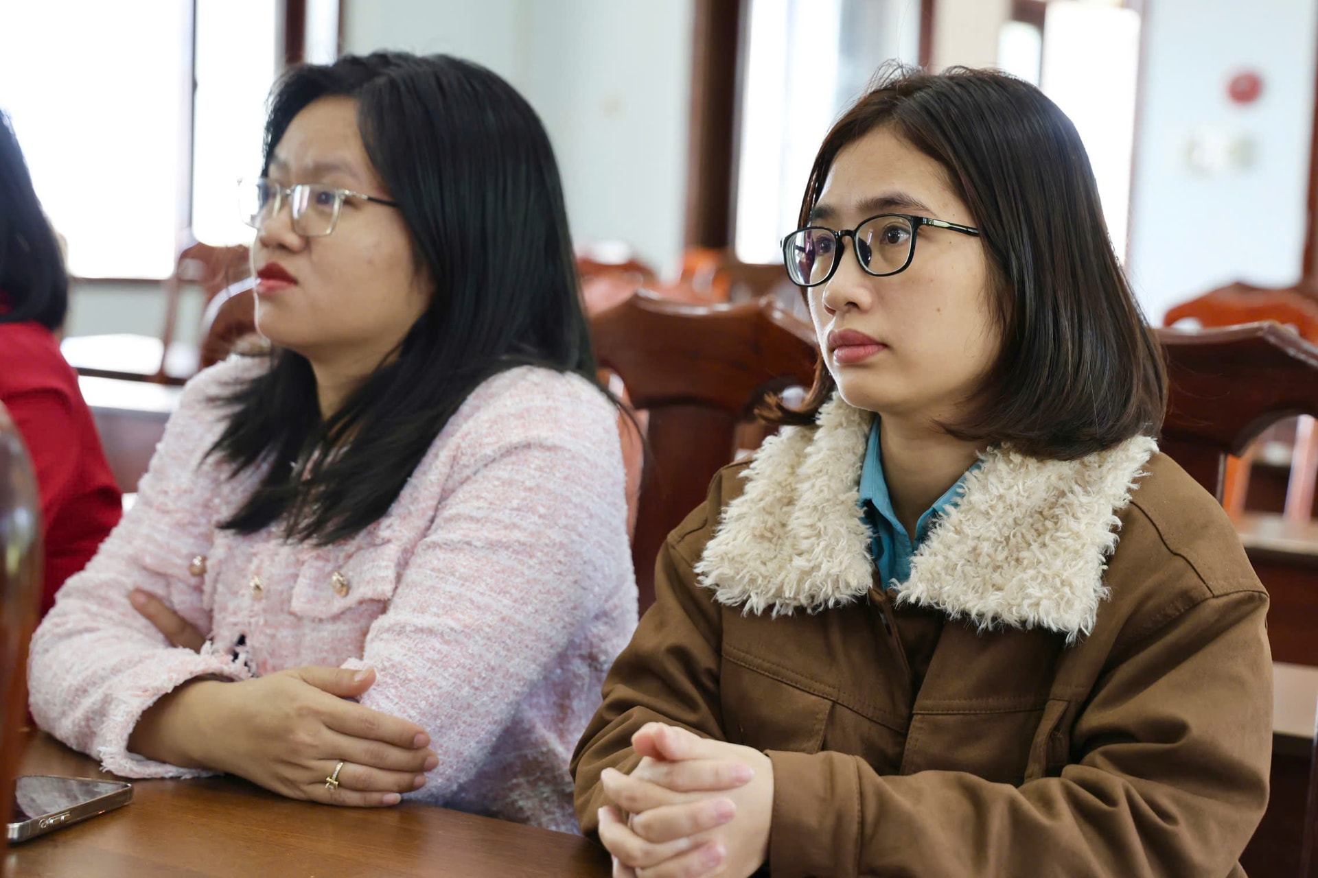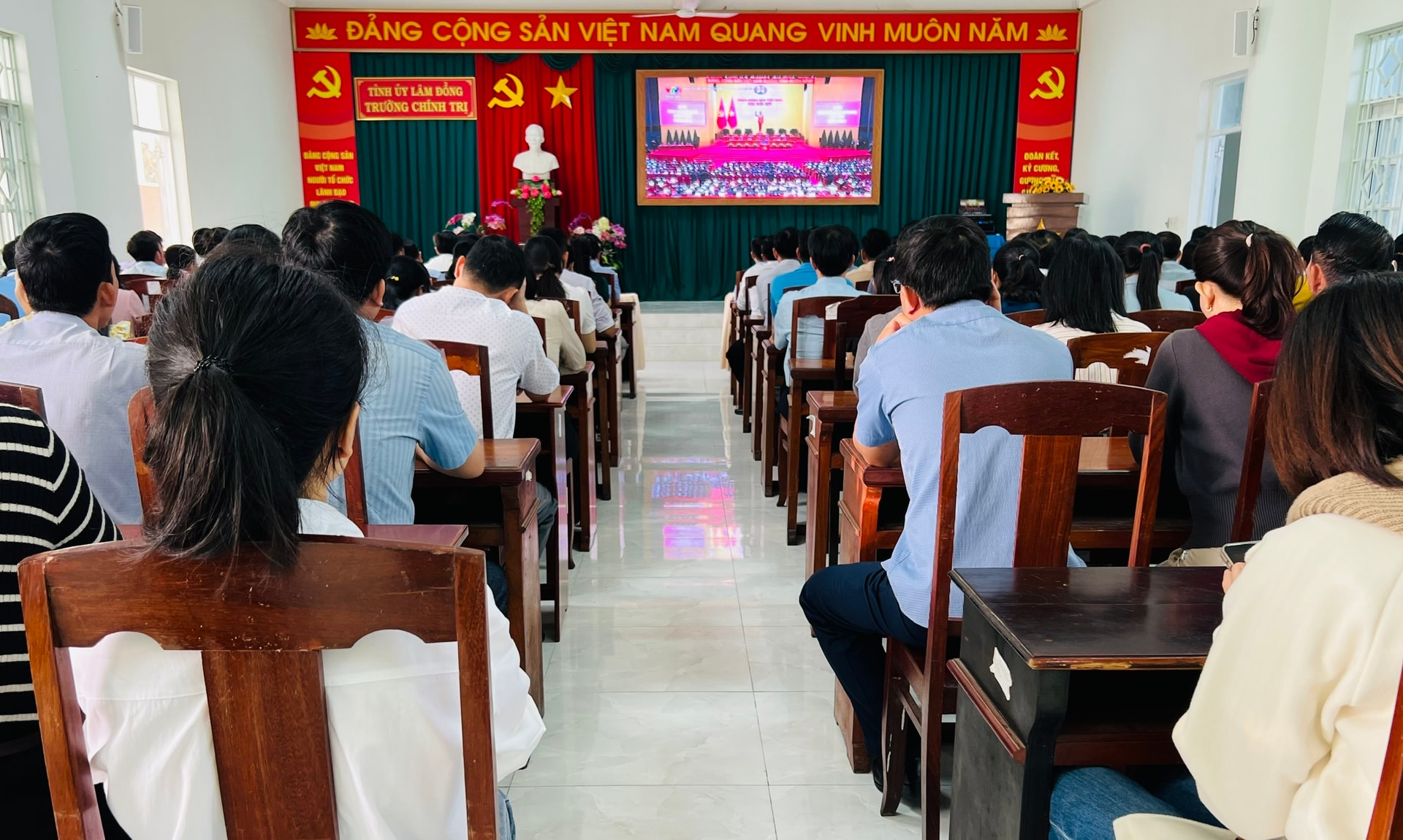 Cán bộ, giảng viên và học viên của Trường Chính trị tỉnh Lâm Đồng (Cơ sở 2) chăm chú theo dõi phiên khai mạc Đại hội XIV của Đảng. Ảnh: Thanh Nhàn