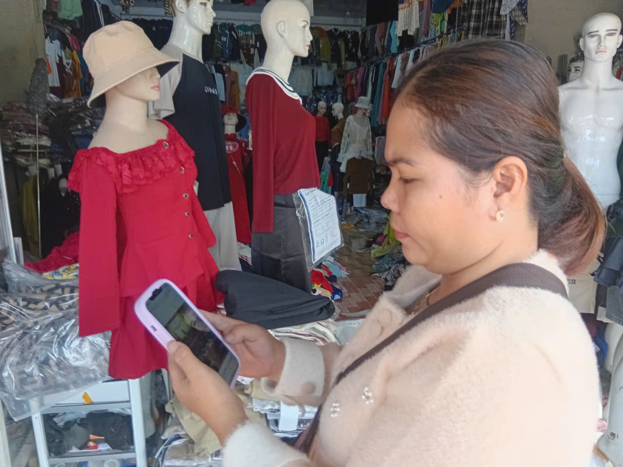 Người dân phường Phan Thiết tranh thủ thời gian nghỉ theo dõi diễn biến Đại hội XIV của Đảng qua điện thoại. Ảnh: Thanh Nhàn