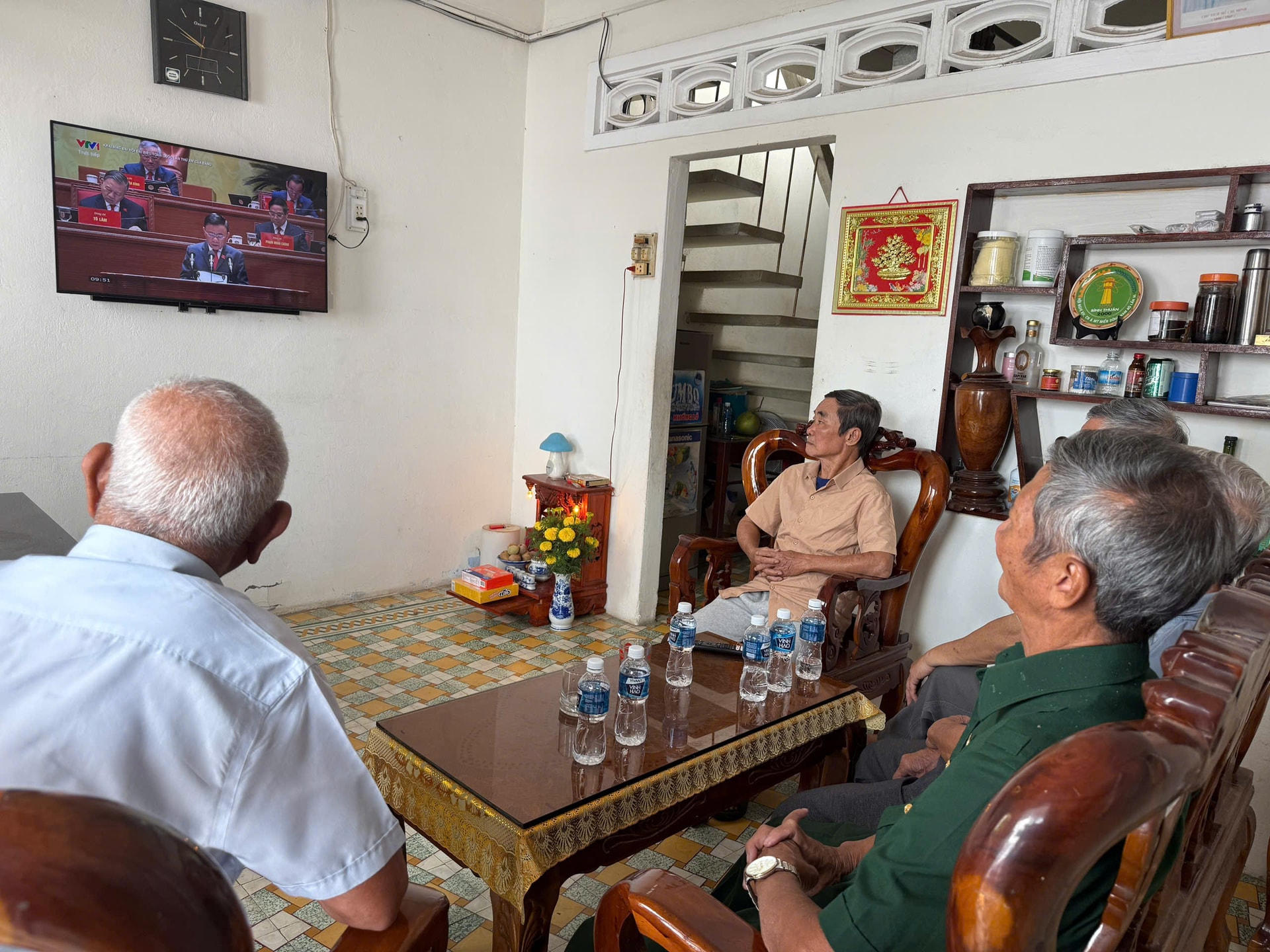 Các Cựu chiến binh khu phố 2, phường Phú Thủy, tỉnh Lâm Đồng theo dõi phiên khai mạc Đại hội XIV của Đảng. Ảnh: Thế Ân