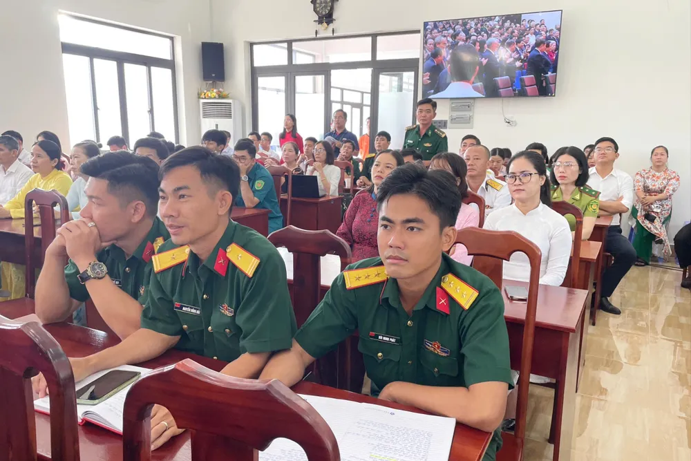 Tại các điểm cầu, đông đảo cán bộ, đảng viên và người dân chăm chú theo dõi từng hình ảnh, từng khoảnh khắc được truyền trực tiếp từ hội trường chính.