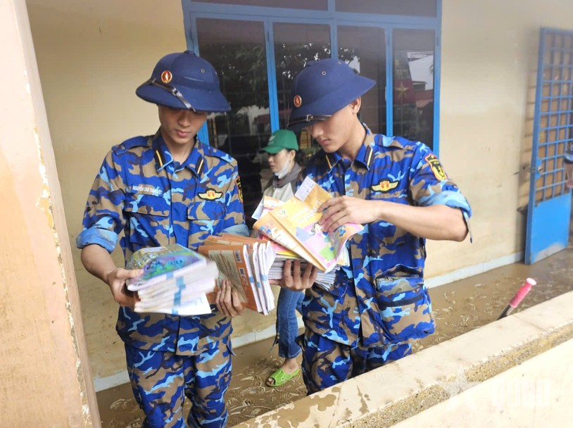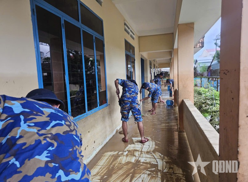 Tại các địa điểm, lực lượng của Học viện Hải quân giúp nhân dân tổng dọn nhà ở, đường sá, đặc biệt là huy động tối đa lực lượng giúp tổng dọn các trường học, nhằm sớm ổn định cho các em đến trường.