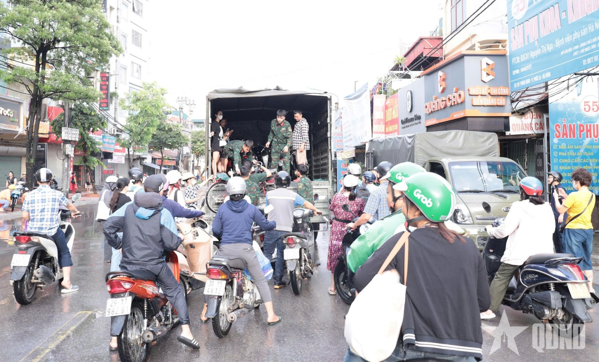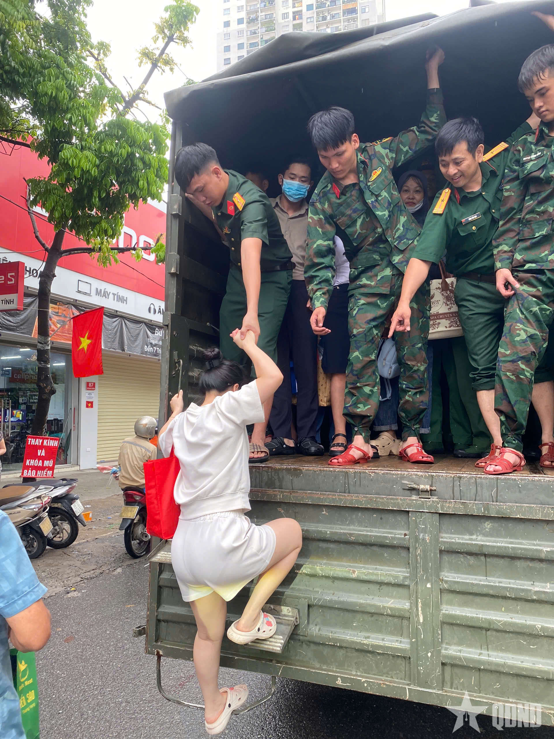 Đại úy Lê Khắc Thuần, Đội trưởng Đội xe, Phòng Hậu cần-Kỹ thuật, Học viện Quân y, chỉ huy lực lượng hỗ trợ người dân tại hiện trường chia sẻ: "Chúng tôi nhận lệnh từ 17 giờ chiều 30-9 ứng trực để hỗ trợ, giúp đỡ nhân dân. Dù mưa to, ngập sâu, nhưng nhìn bà con an toàn là ấm lòng rồi. Đây là nhiệm vụ thường trực của Học viện Quân y, vừa cứu hộ vừa sẵn sàng hỗ trợ y tế nếu có trường hợp bị thương do trượt ngã".