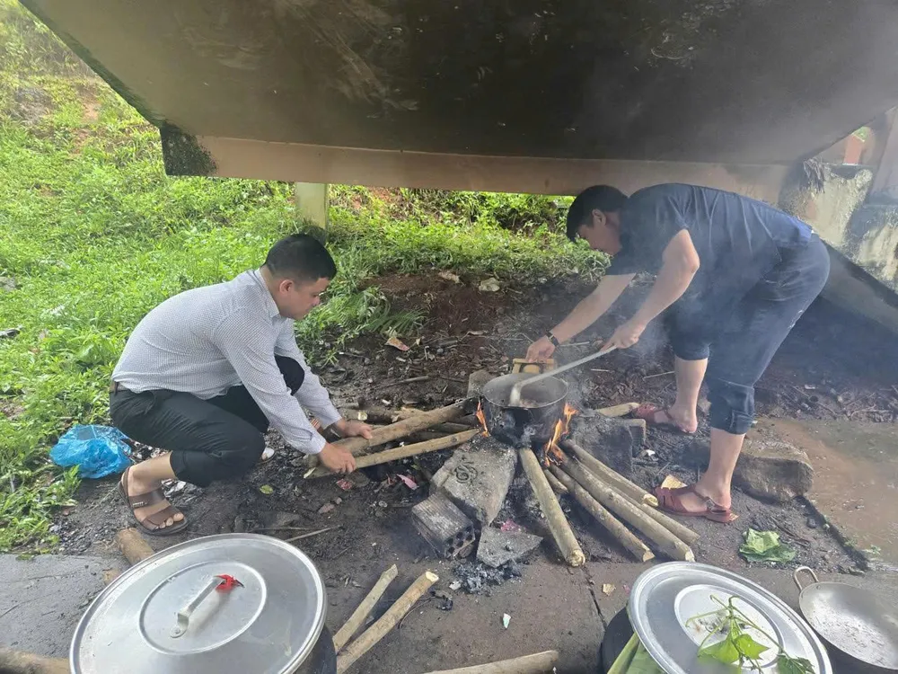Ở nơi sơ tán, những bữa cơm đầu tiên giữa mưa gió được nhóm lên từ tình thương và tinh thần sẻ chia.