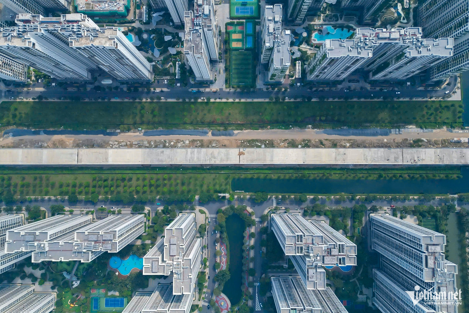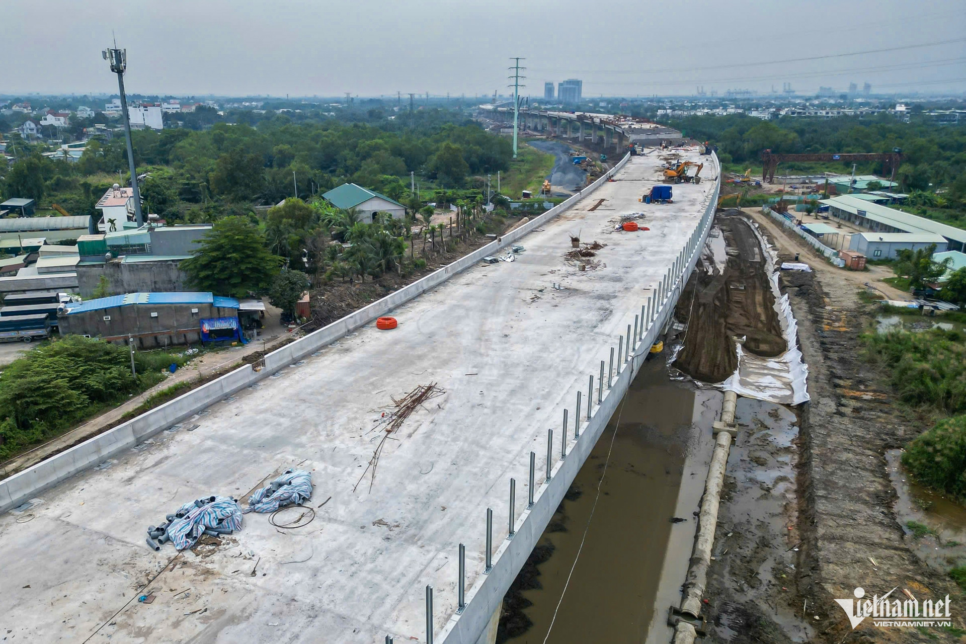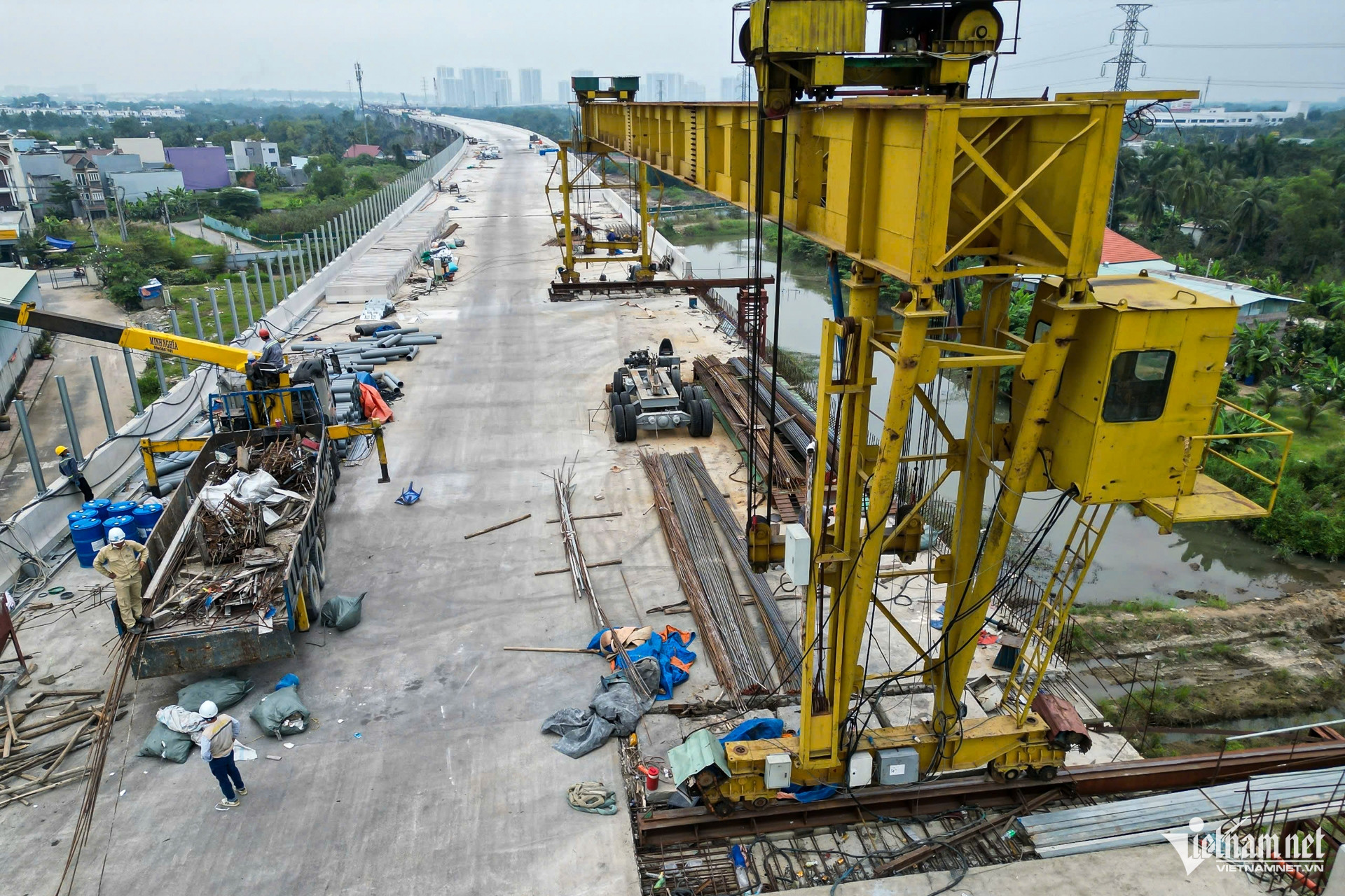 Theo ghi nhận tại công trường phía đông TPHCM đoạn 14,7km qua các gói XL1 (xây lắp 1) đến gói thầu XL3 (xây lắp 3), các nhịp cầu chạy qua khu vực Vinhomes Grand Park đã nối thông suốt, hình thành trục cầu vượt cao xuyên qua khu dân cư.