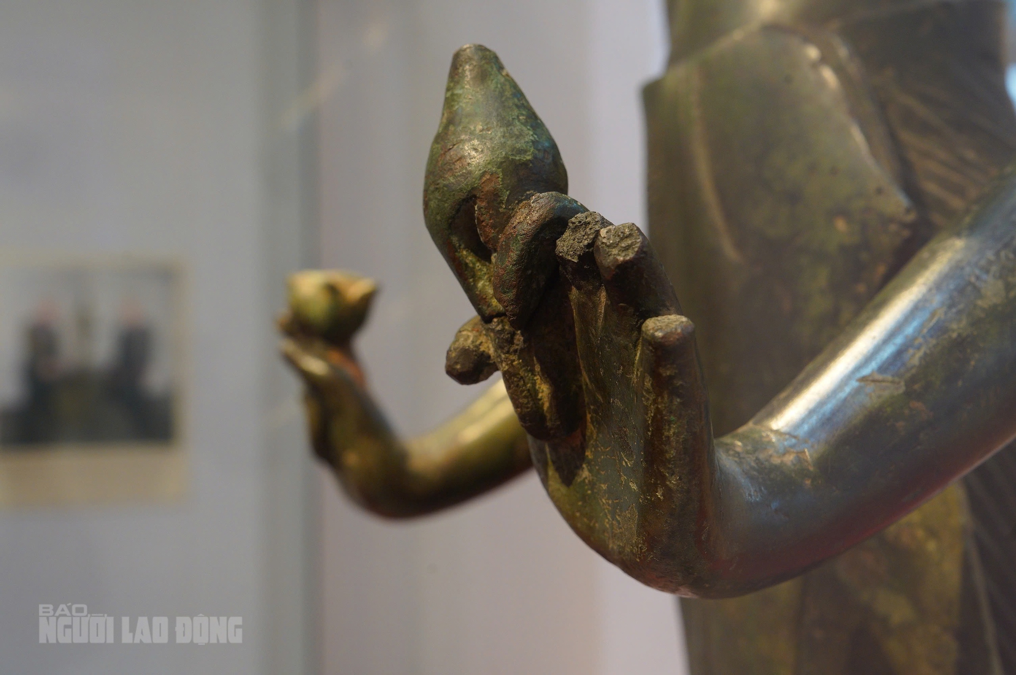 Hai vật cầm tay từng thất lạc của pho tượng cũng vừa được phục nguyên, đưa ra giới thiệu công chúng