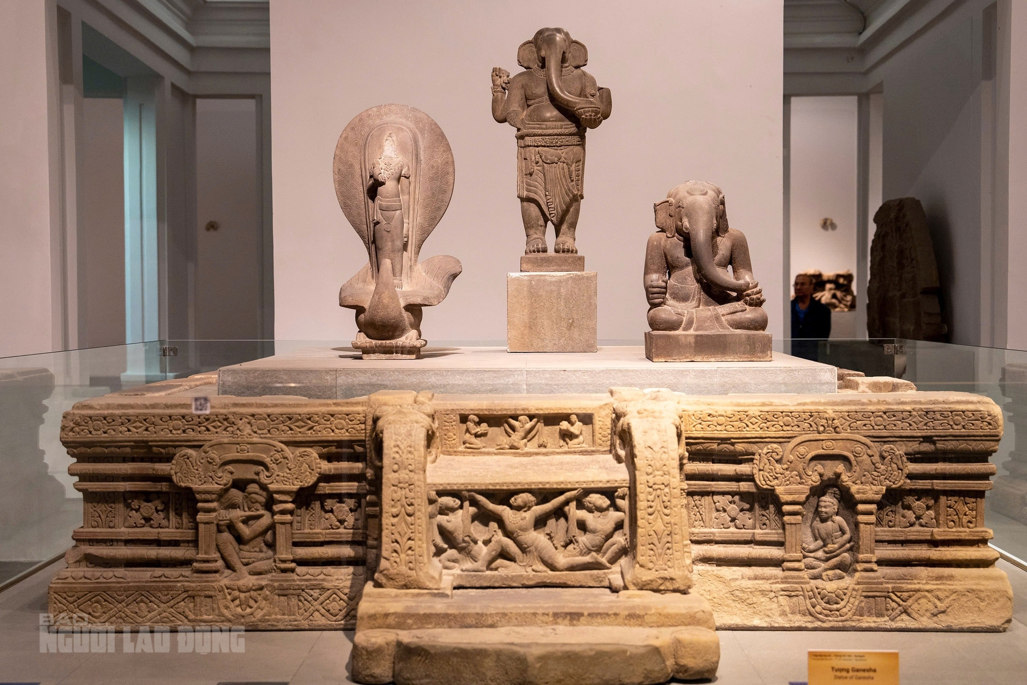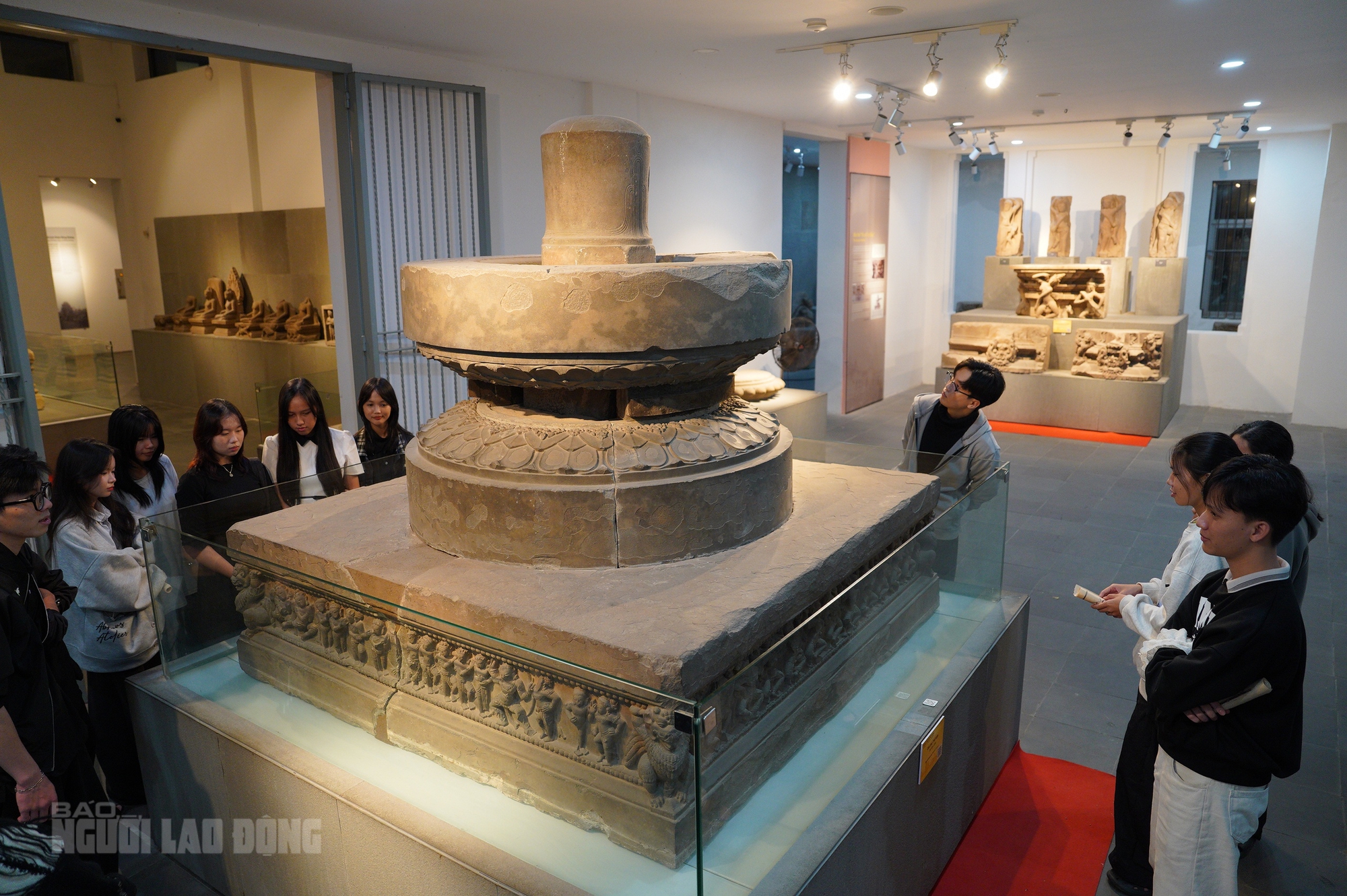 Bên cạnh đó, đài thờ Đồng Dương (thế kỷ 9), cao 197 cm, dài 396 cm, rộng 354 cm, được công nhận bảo vật quốc gia năm 2018, tiếp tục là điểm nhấn của trưng bày