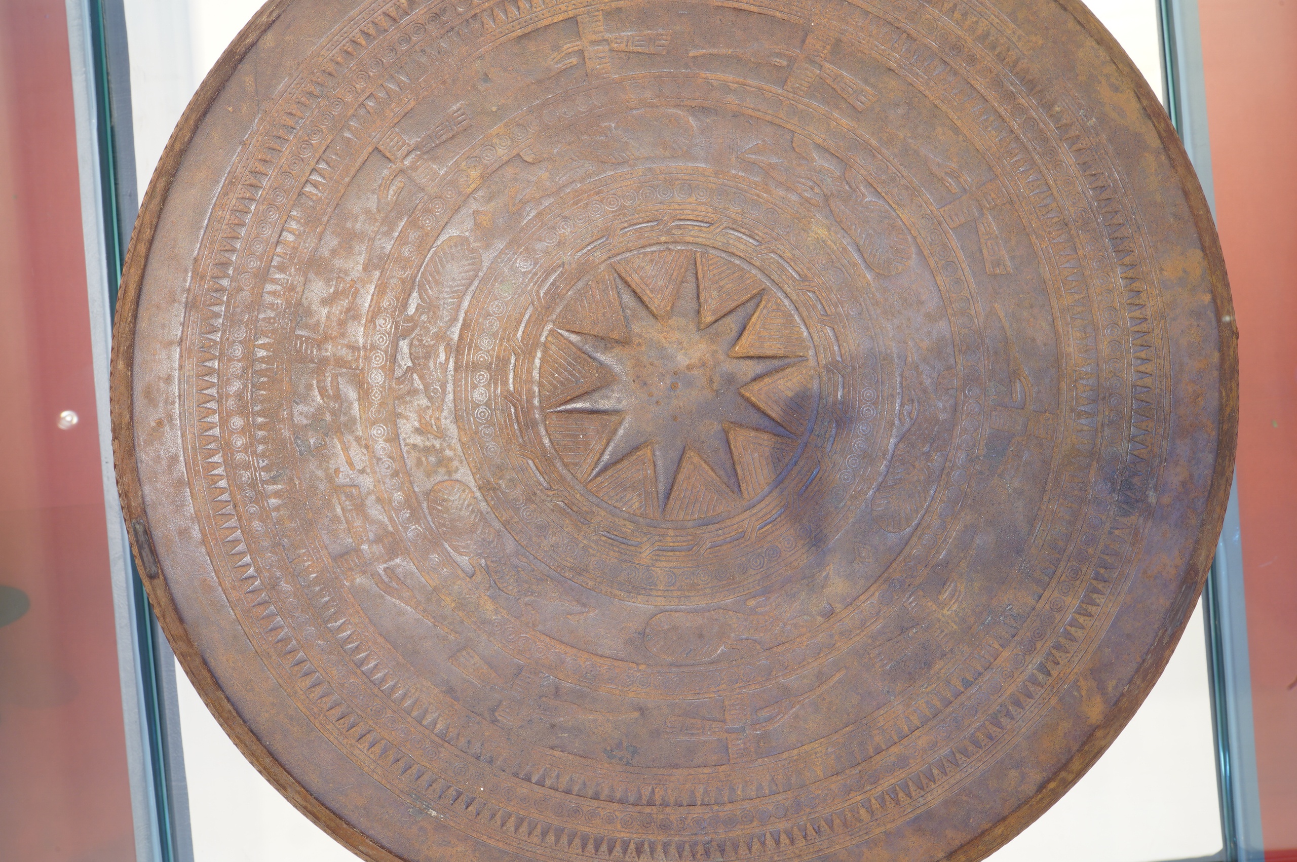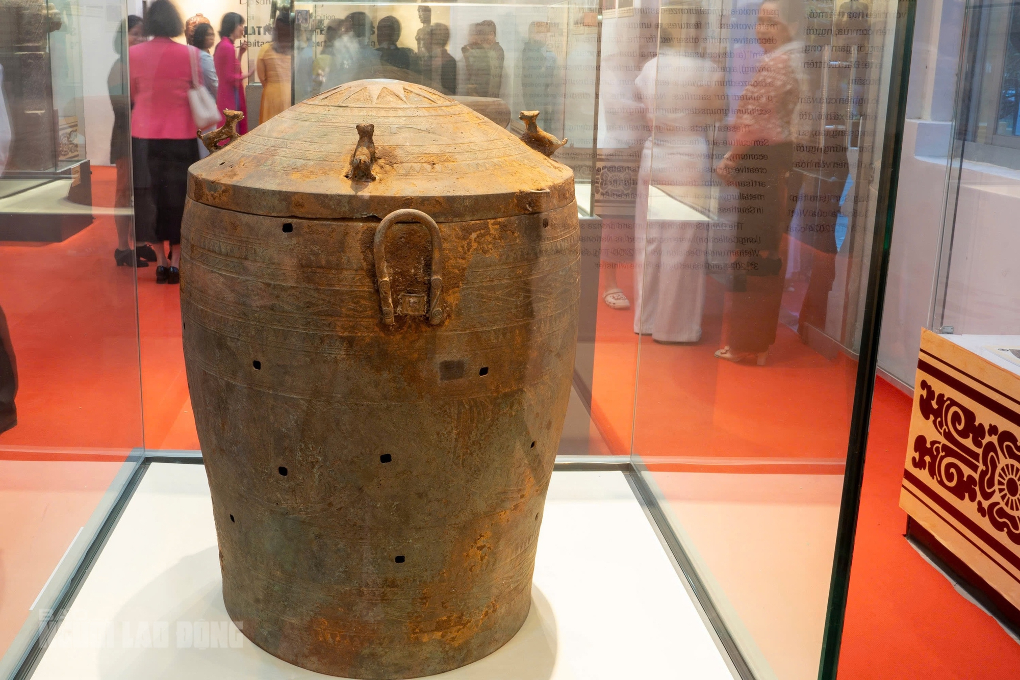 Bên cạnh nguồn sưu tập của bảo tàng, nhà sưu tập tư nhân Lương Hoàng Long (phường Hội An, TP Đà Nẵng) mang đến trưng bày hai hiện vật gốc thuộc văn hóa Đông Sơn: trống đồng (thế kỷ 3-2 trước Công nguyên, bảo vật quốc gia năm 2024) và thạp đồng (thế kỷ 3-1 trước Công nguyên).
