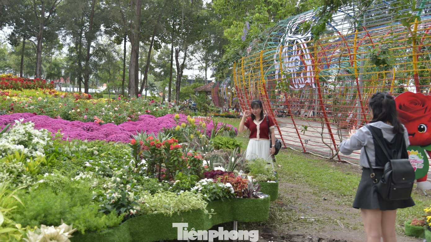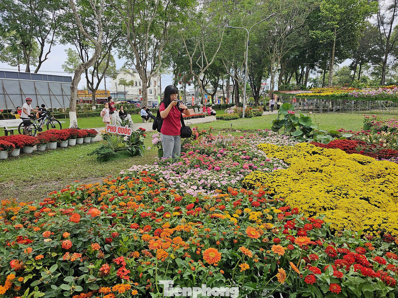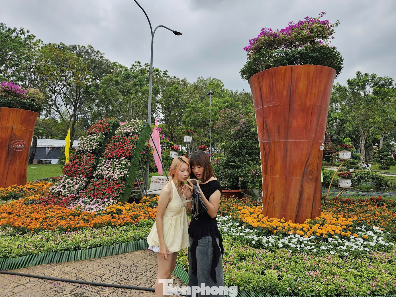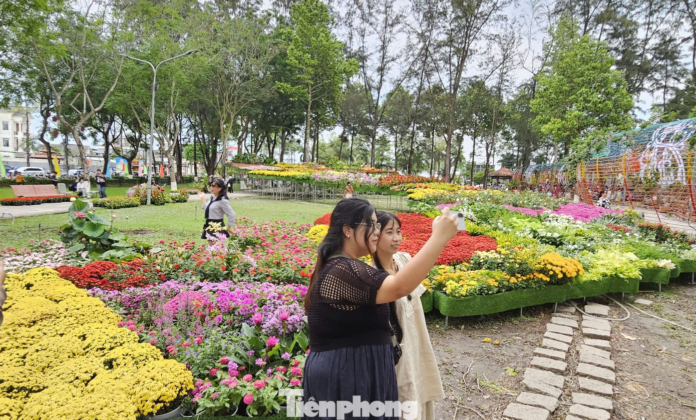 Bản đồ từ 1.000 giống hoa là một trong những điểm nhấn của Festival. Trong ảnh, du khách thích thú chụp ảnh tại bản đồ hoa.