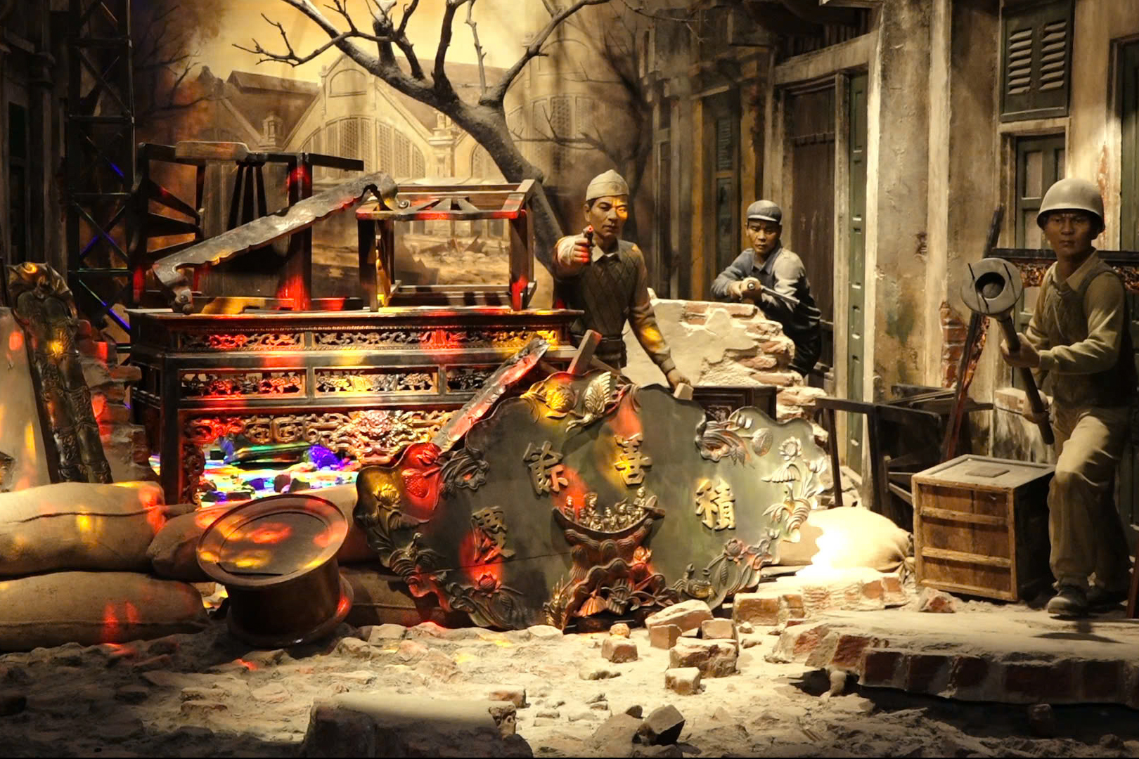 Mô hình hoạt cảnh sinh động với tỷ lệ 1:1, làm sống lại không gian phố phường Hà Nội trong cuộc chiến đấu 60 ngày đêm bảo vệ Thủ đô sau Lời kêu gọi Toàn quốc kháng chiến của Chủ tịch Hồ Chí Minh.