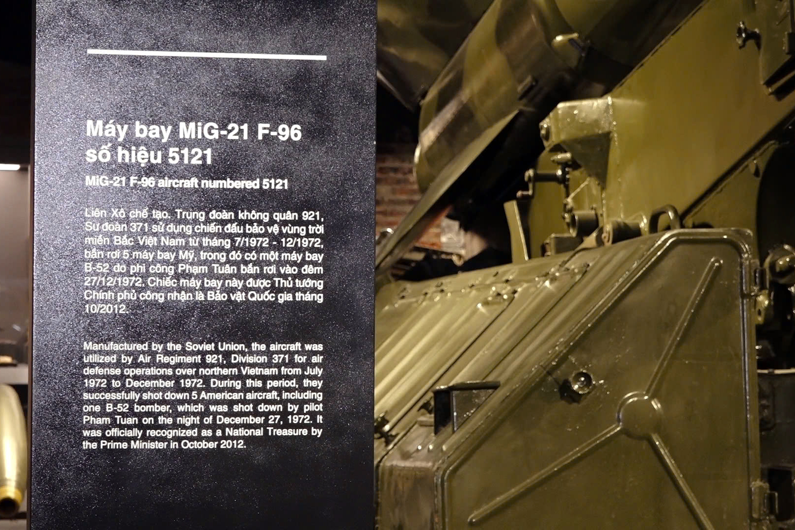 Khu vực trưng bày Bảo vật Quốc gia chiếc máy bay MiG-21 số hiệu 5121 cùng các hệ thống phòng không góp phần làm nên chiến thắng "Điện Biên Phủ trên không" của quân và dân ta tháng 12-1972.
