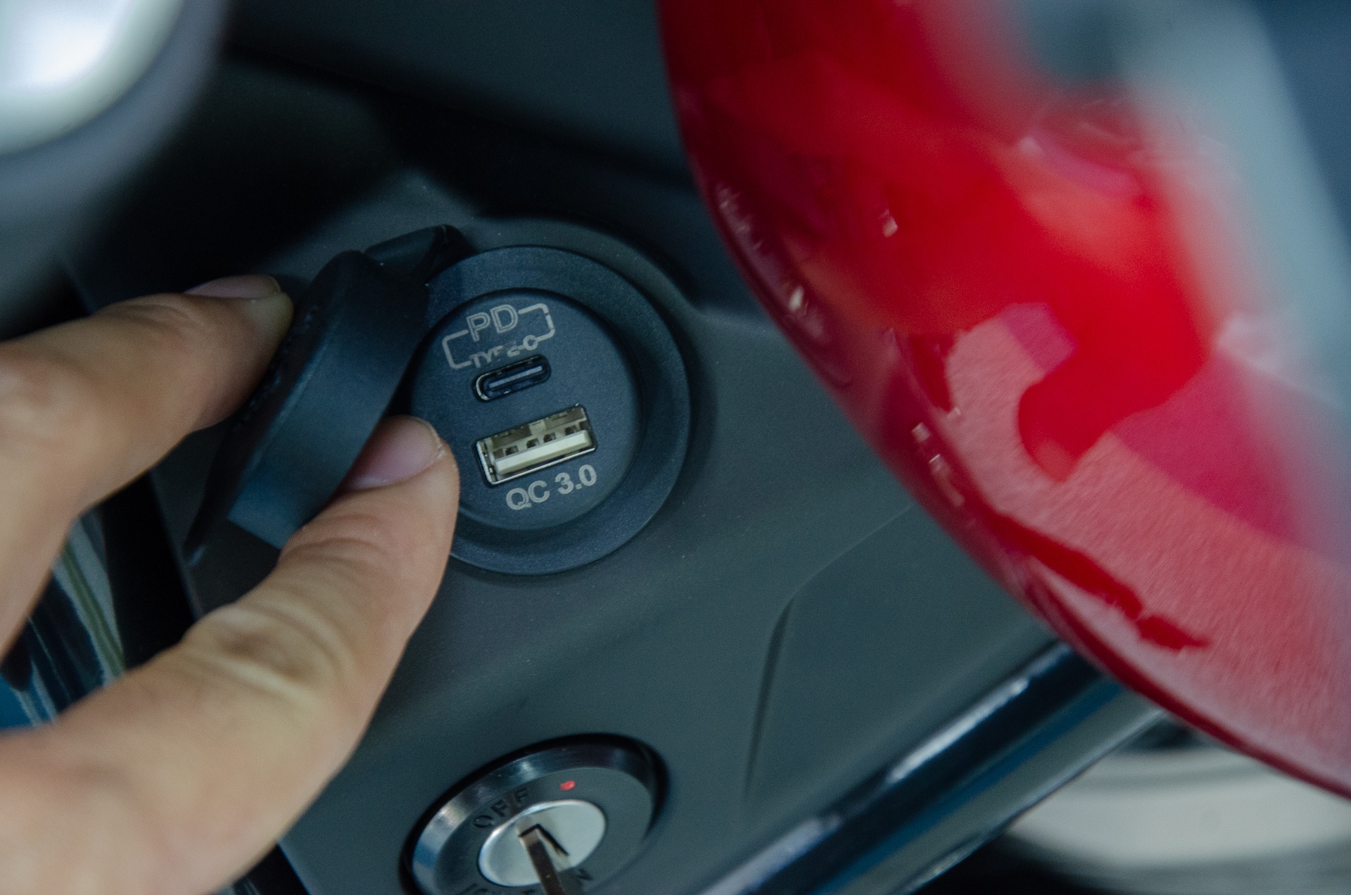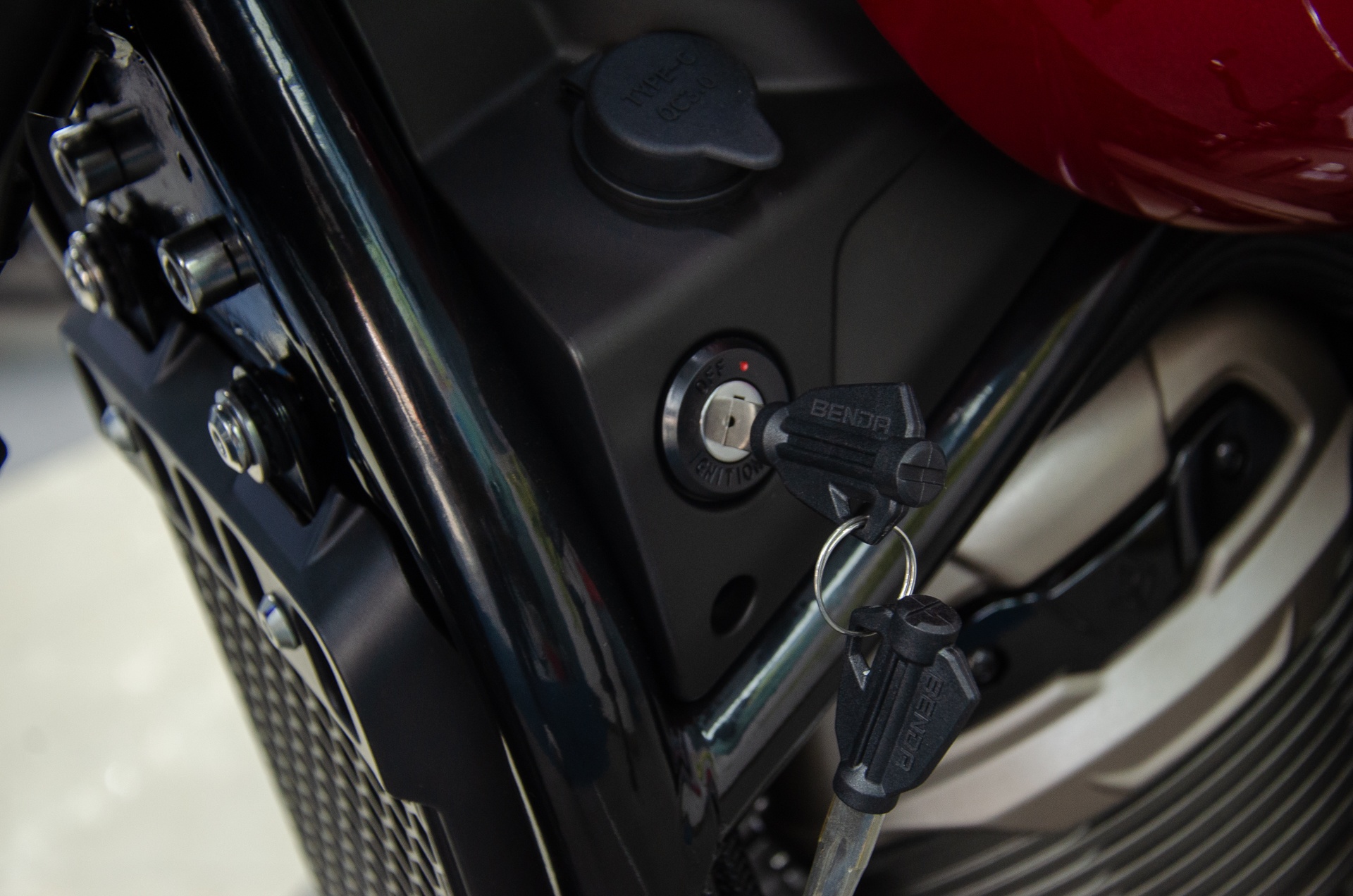 Mẫu cruiser sử dụng chìa khóa cơ để khởi động. Ngay trên ổ khóa là cụm cổng sạc dành cho thiết bị di động.