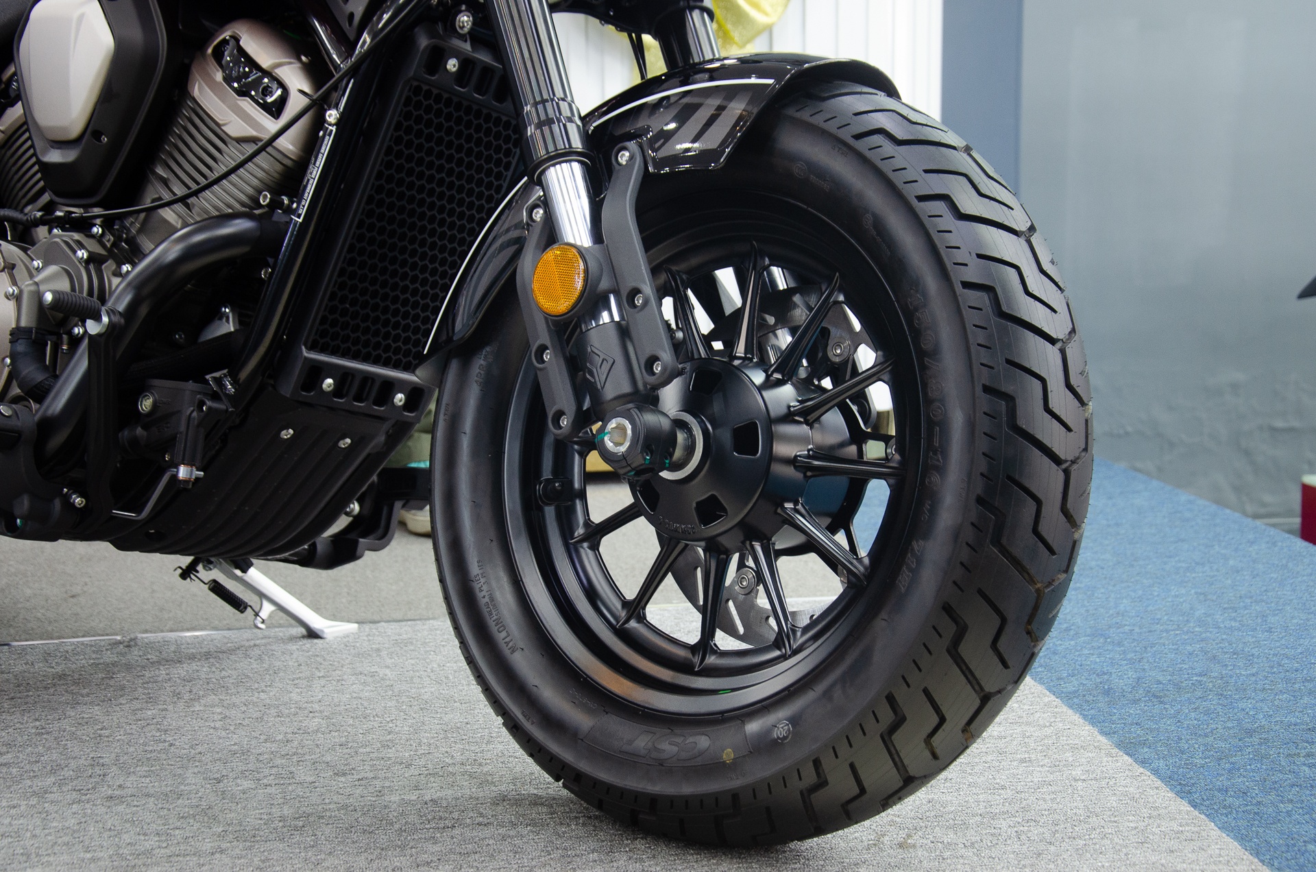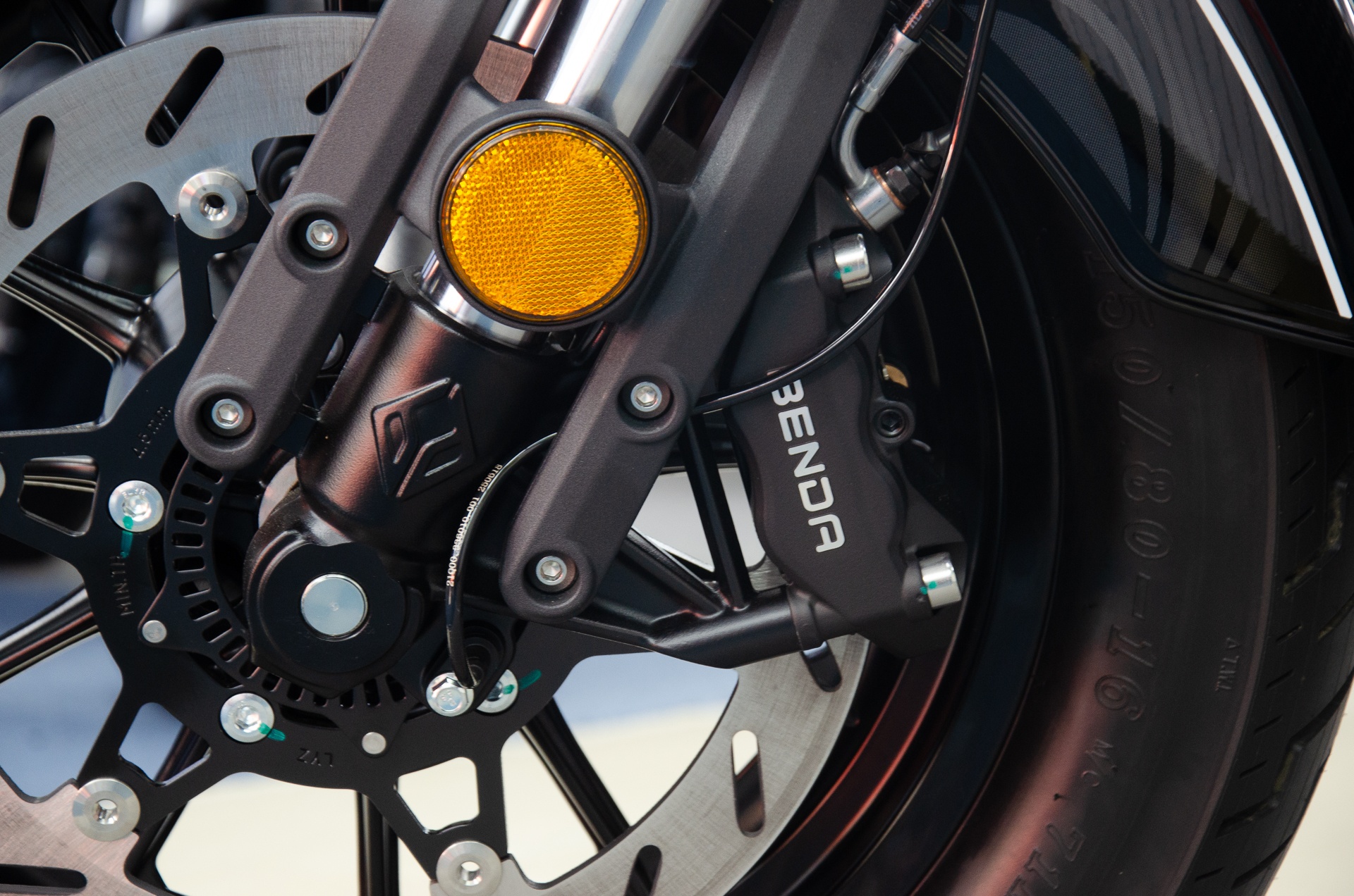 Ở phía trước, Benda Chinchilla sử dụng cặp phuộc upside-down, mâm đúc đường kính 16 inch kèm bộ lốp thông số 150/80. Đĩa phanh trước đường kính 320 mm, đi kèm kẹp phanh Benda, có trang bị ABS.