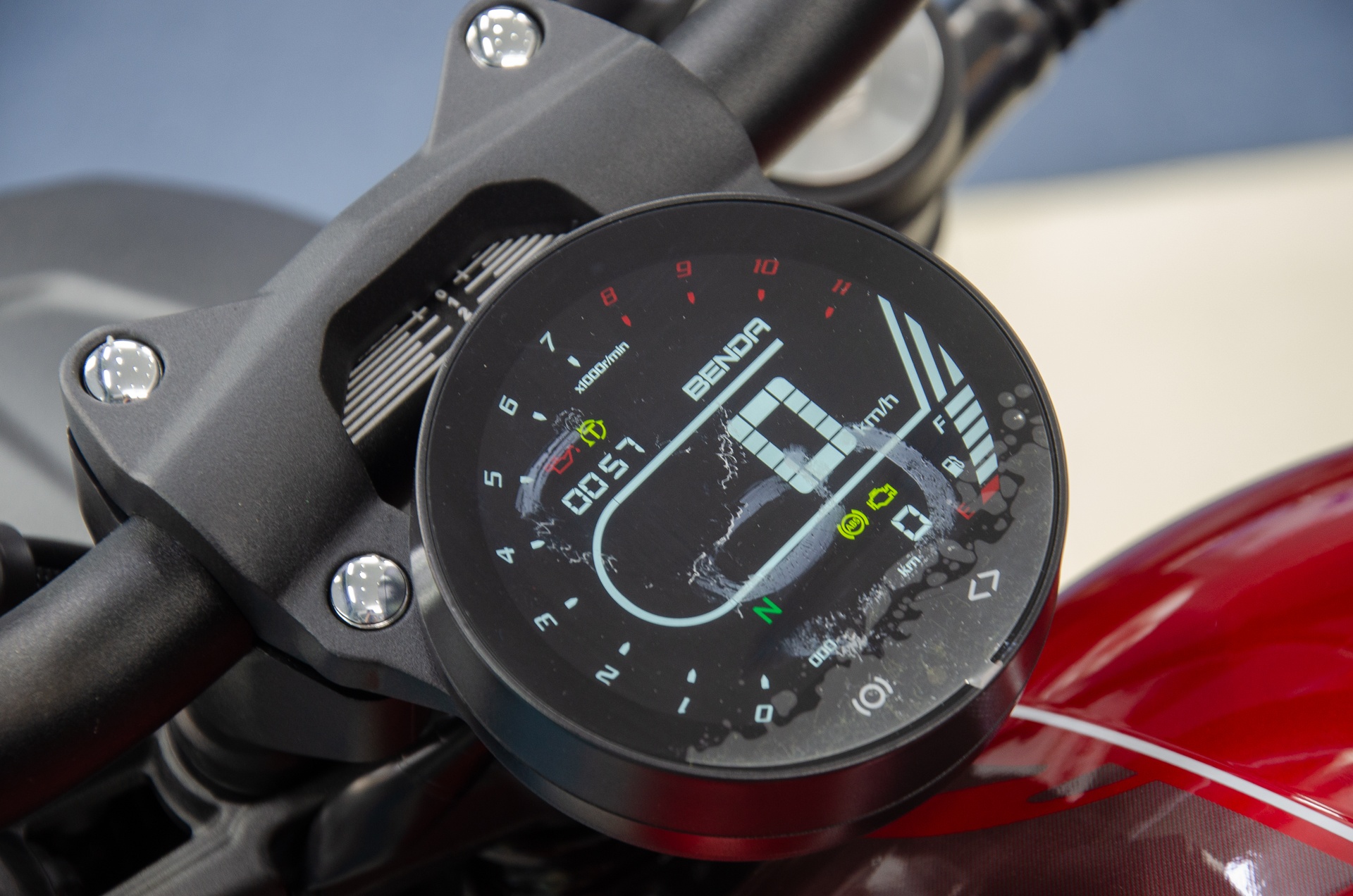 Benda Chinchilla 500 được trang bị cụm đồng hồ TFT màu, tạo hình tròn, hiển thị sắc nét các thông số quan trọng như tốc độ xe, vòng tua máy, mức nhiên liệu...