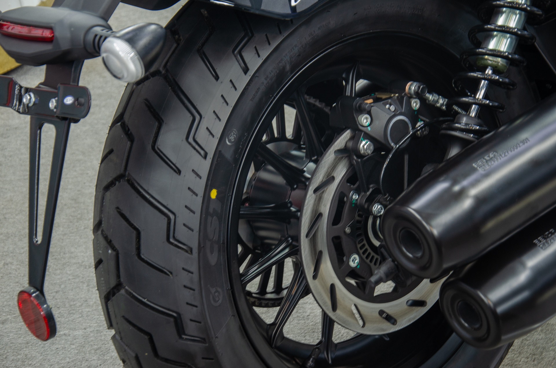 Đuôi xe gọn gàng. Đèn hậu và đèn xi-nhan được bố trí thẳng hàng, cùng nằm trên chắn bùn sau.