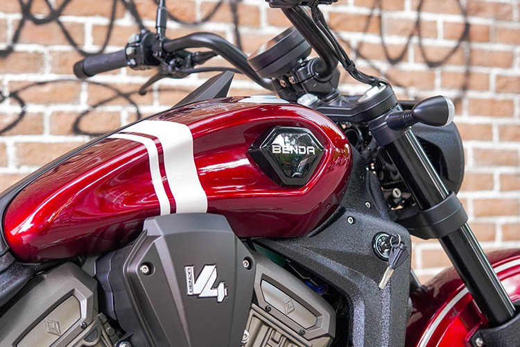 Ngoài cụm đèn pha dạng tròn công nghệ LED thiết kế 3D với logo Benda chạm khắc tinh xảo được bao bọc bởi ốp kim loại, xe còn sở hữu cụm đồng hồ hiển thị thông tin dạng tròn kỹ thuật số, kết hợp bình nhiên liệu kích thước lớn kết hợp liền lạc, uyển chuyển với yên xe cùng vè chắn bùn phía sau.