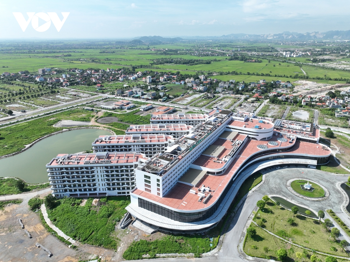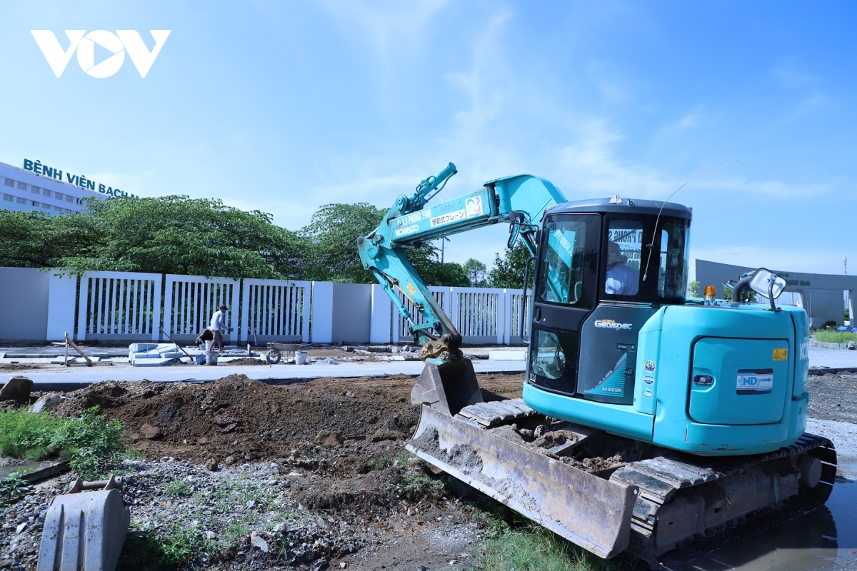 Khuôn viên, đường giao thông cũng đang được gấp rút hoàn thiện chuẩn bị cho việc đón tiếp bệnh nhân dự kiến vào cuối tháng 11 năm 2025.