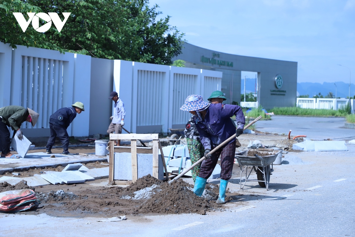 Những ngày giữa tháng 10, công nhân cùng máy móc thiết bị đang khẩn trương hoàn thiện phần kỹ thuật, lắp đặt thiết bị và xử lý cảnh quan.