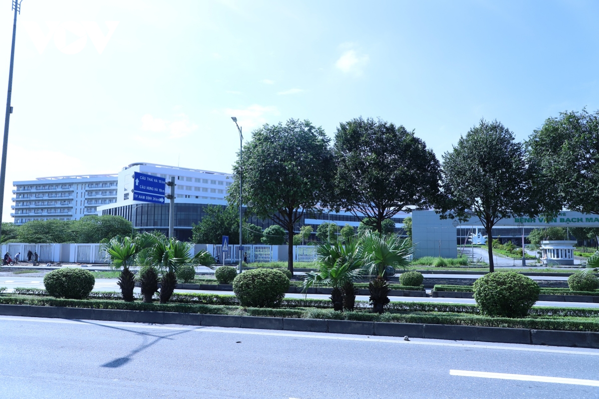 Hệ thống cây xanh, đường nội bộ, khu xử lý nước thải y tế, bãi đỗ xe và khu nhà ăn được đầu tư đồng bộ, hướng tới mô hình “bệnh viện xanh - thông minh”.