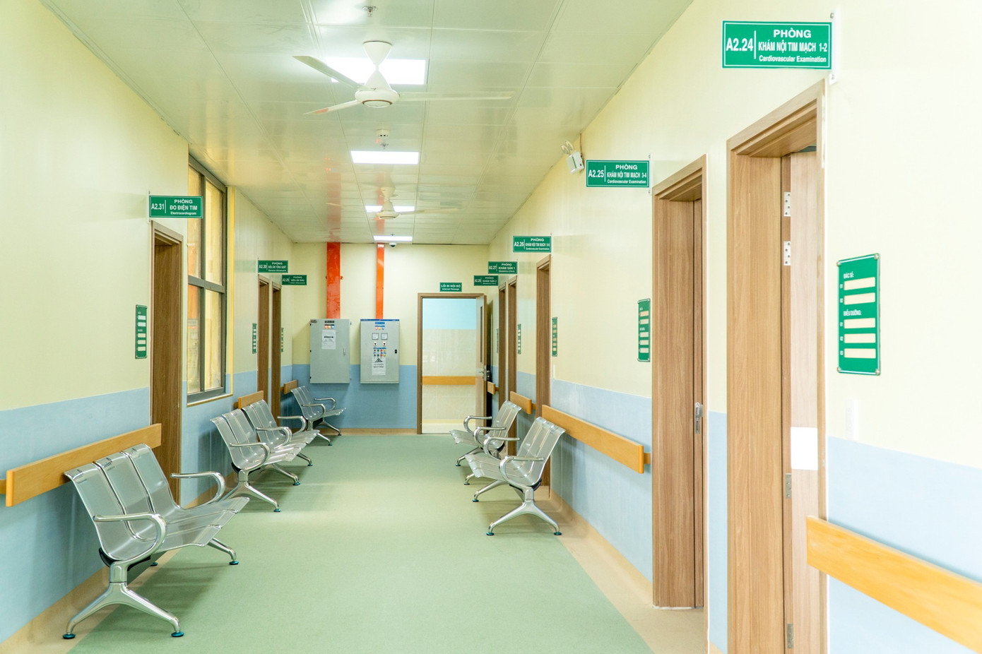 Hệ thống hành lang, khu chờ và các phòng khám được bố trí rộng, thoáng và khoa học, bảo đảm luồng di chuyển thuận tiện cho bệnh nhân và nhân viên y tế.