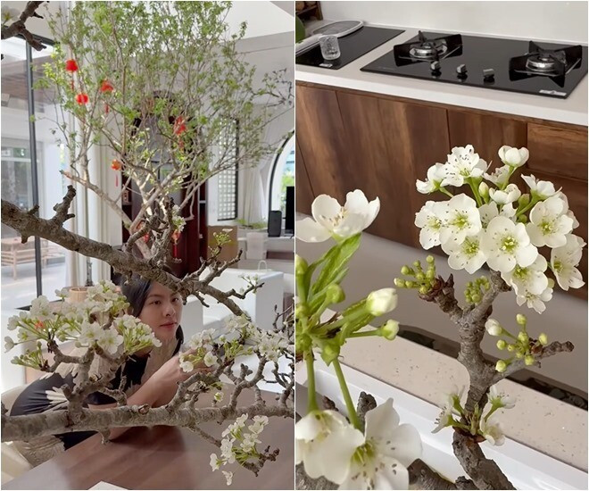 Sống trong biệt thự 1.000m2 ở TP HCM, Vân Trang rất thích trang hoàng cho tổ ấm. Nữ diễn viên thường xuyên cắm các loại cành như lê, mận...tới hoa tươi. Ảnh: FBNV
