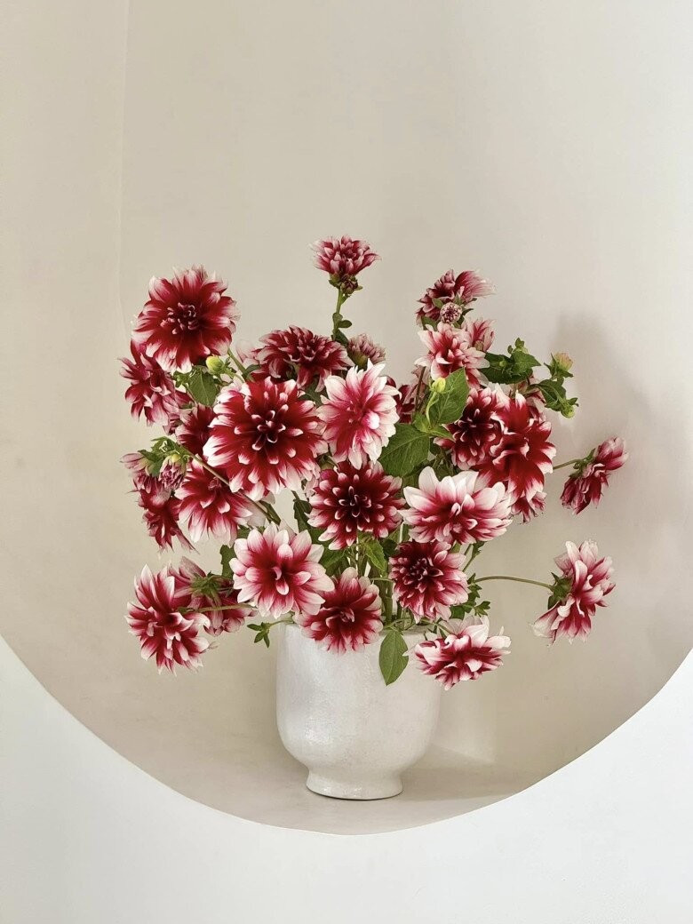 Ngoài cúc họa mi, Vân Trang còn cắm bình thược dược rực rỡ. Ảnh: FBNV