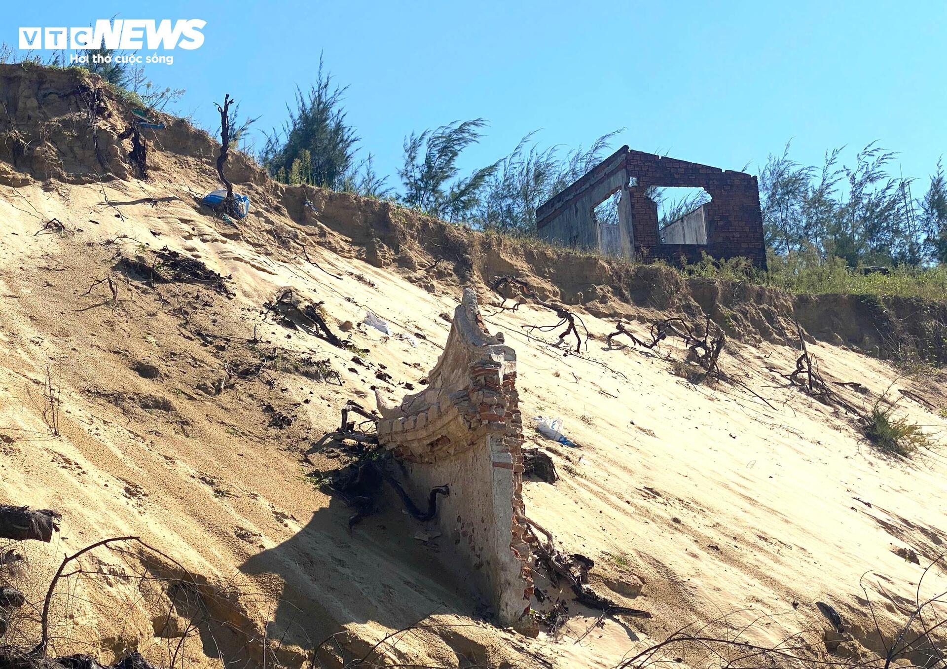 Ông Hà Văn Mai, trú thôn Bình Trung, cho hay tình trạng sạt lở bờ biển Cửa Lở diễn ra từ chục năm nay. Khoảng 2-3 năm trở lại đây, hàng chục ngôi mộ và nhiều căn nhà tạm đã bị sóng đánh sập, chôn vùi dưới cát.