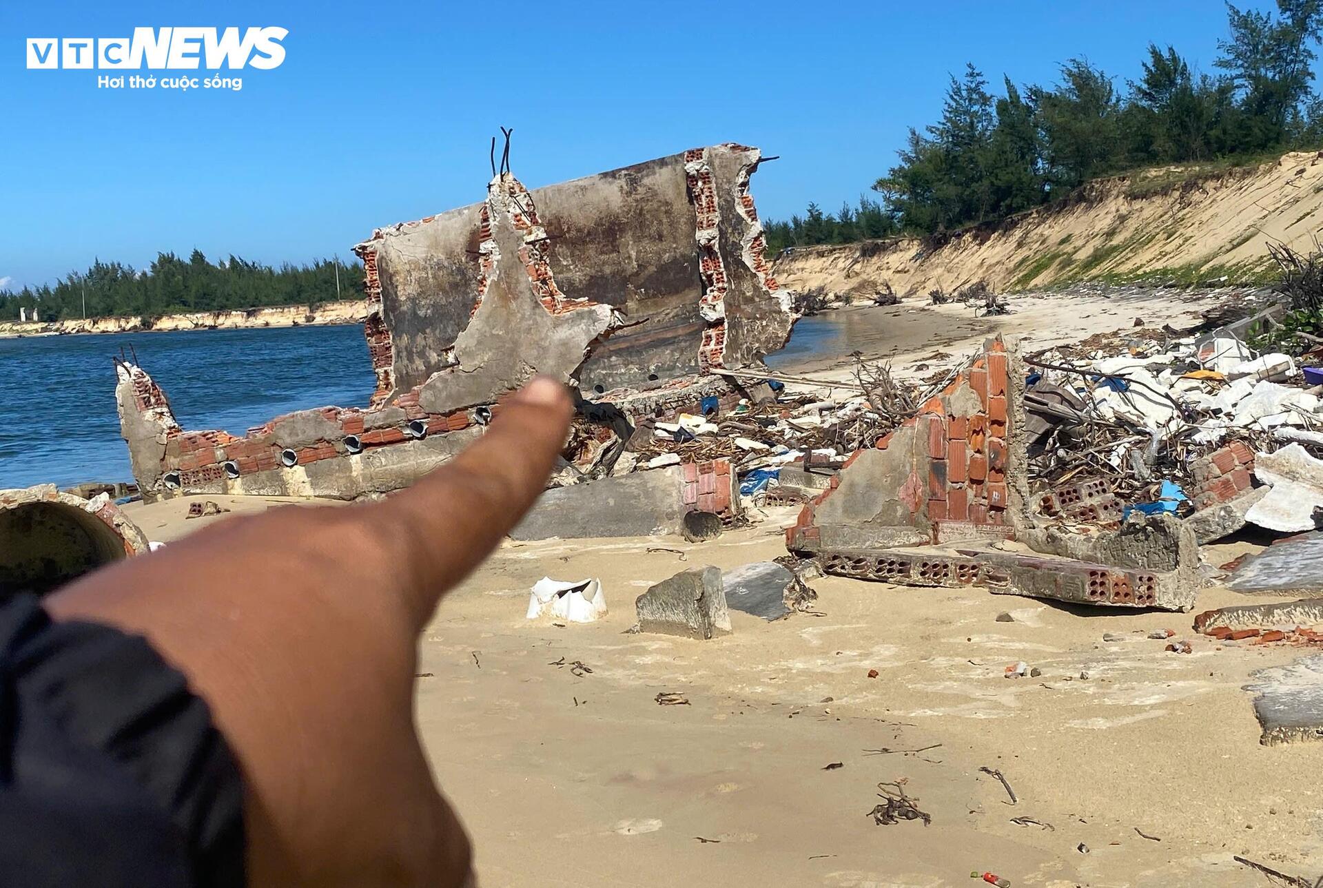 Không ít căn nhà tạm cùng các ao nuôi tôm bị sóng lớn đánh sập, chỉ còn những khối gạch nằm ngổn ngang.