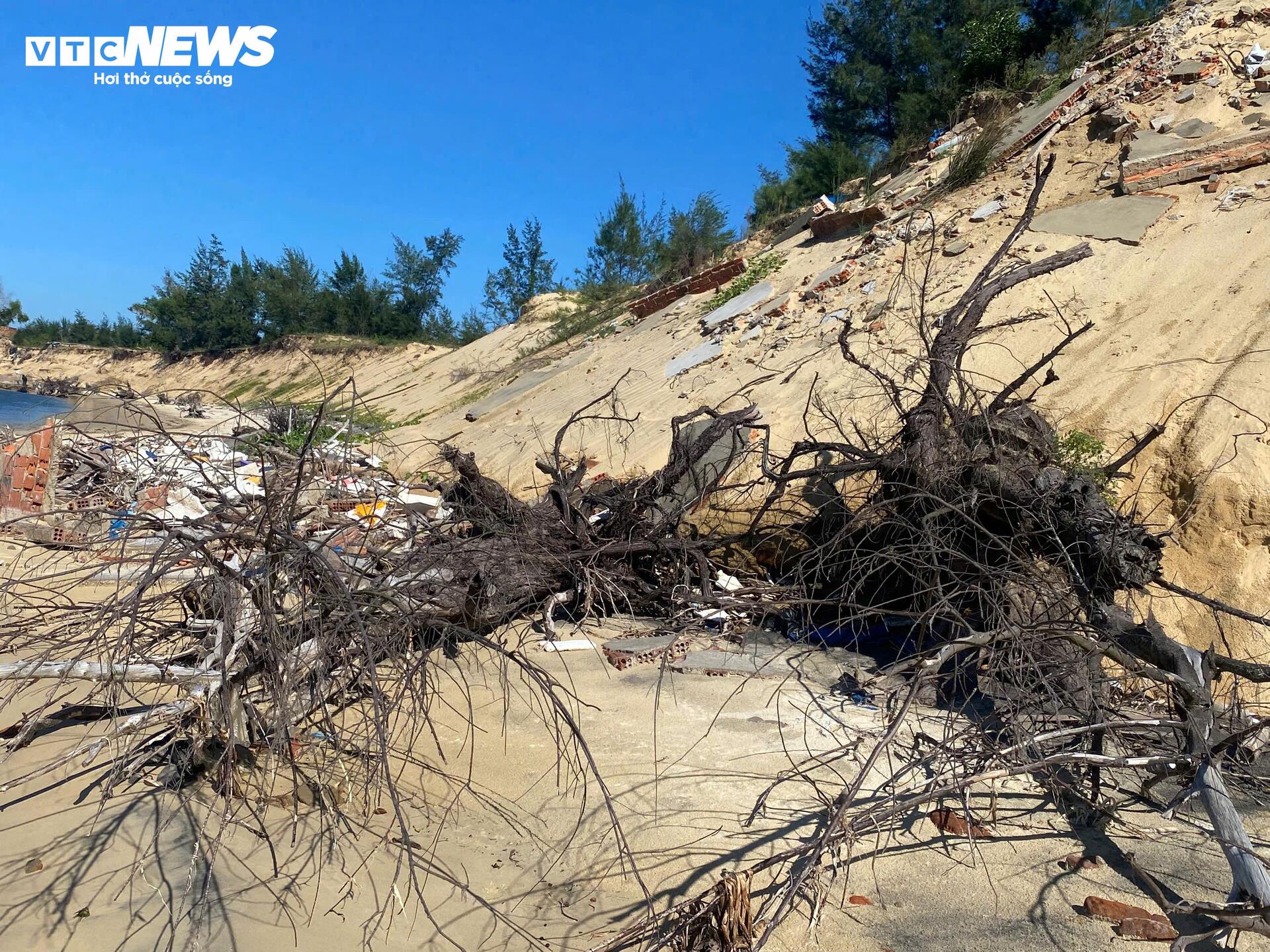 Hàng trăm cây phi lao được người dân trồng để chắn sóng, giữ đất nhưng cũng bị sóng "ngoạm" bật gốc.