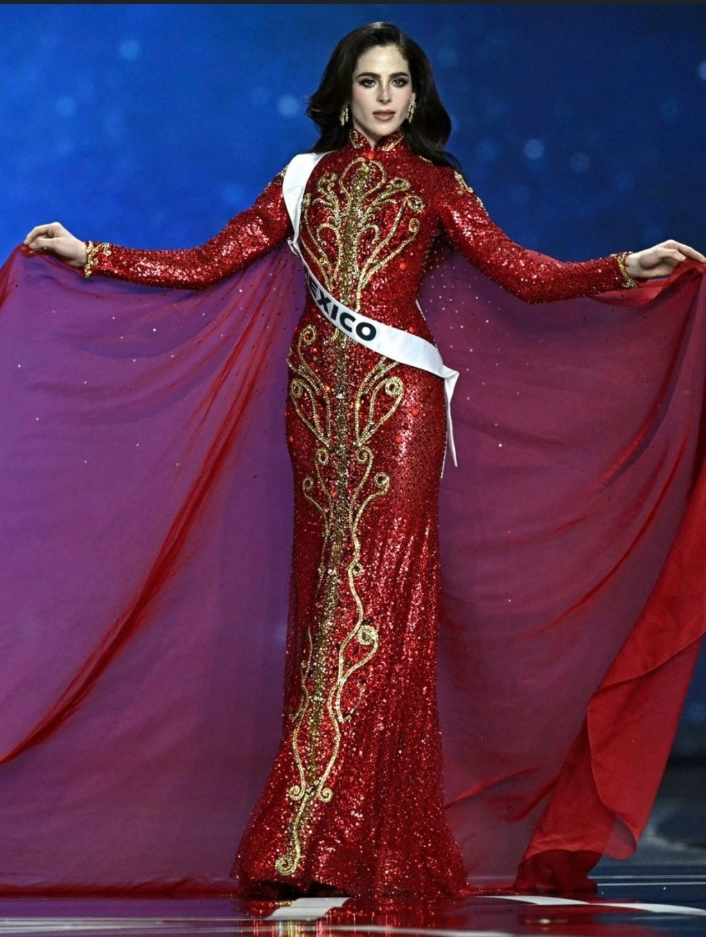Đặc biệt nhất là thân trên của bộ váy này nhìn rất giống áo dài Việt Nam, nhất là phần cổ. Cộng thêm màu đỏ rực và đính pha lê lấp lánh toàn thân, nhiều người gọi vui đây là “áo dài cưới”, còn Fatima Bosch chính là cô dâu chuẩn bị về nhà chồng.