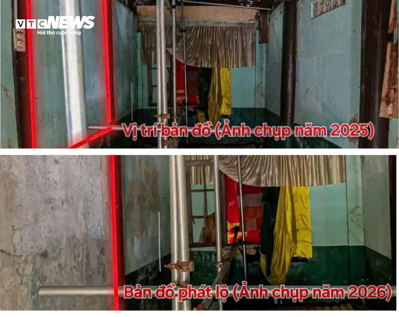 Thời gian trước, công trình từng bị người dân thay đổi kết cấu, sử dụng làm nơi sinh sống. Việc cải tạo tự phát như chia tách không gian, lắp đặt nhà vệ sinh, sơn sửa tường làm biến dạng cấu trúc di tích. Sau khi người dân di dời, trả lại mặt bằng để phục vụ công tác bảo tồn, trùng tu, bức họa lạ với hình thức giống bản đồ được phát lộ.