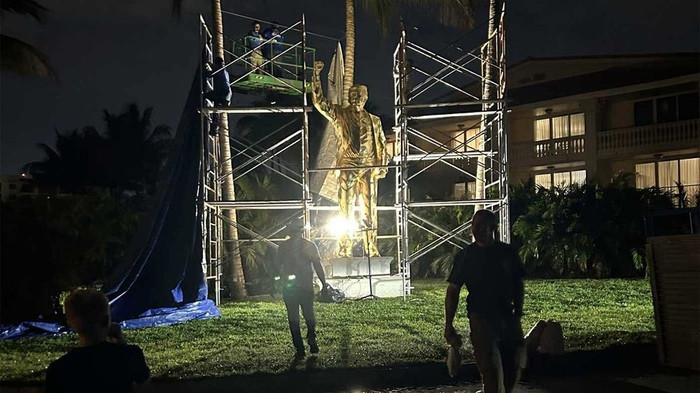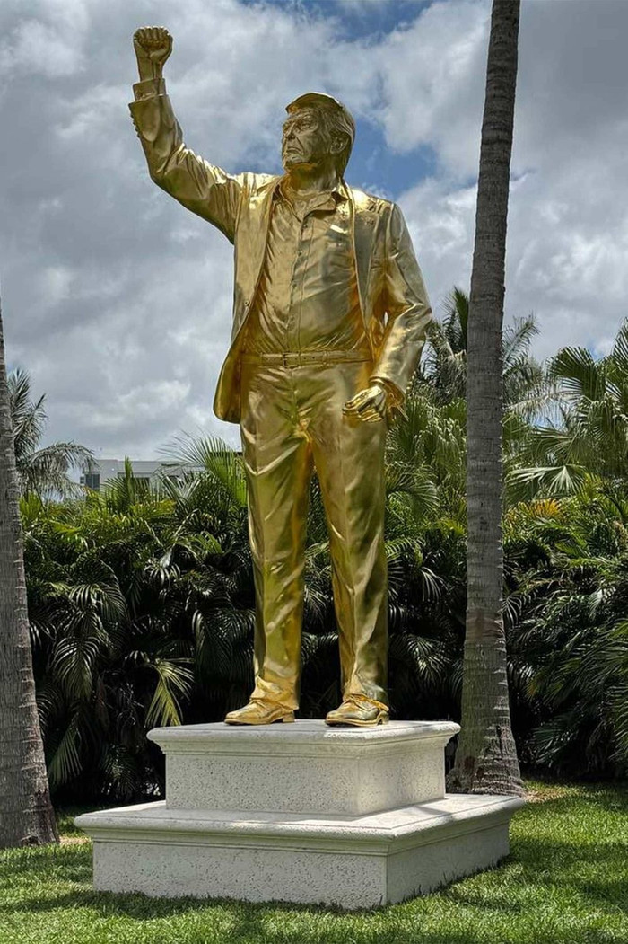 Một bức tượng cao tầm 7 mét khắc họa Donald Trump đang trở thành tâm điểm chú ý khi được lắp đặt tại khuôn viên sân golf thuộc sở hữu của ông ở bang Florida (Mỹ). Tác phẩm điêu khắc được đúc bằng đồng và phủ lớp vàng lá dày, mô tả hình ảnh ông Trump trong tư thế giơ cao nắm đấm, gợi liên tưởng đến khoảnh khắc nổi tiếng sau vụ ám sát hụt năm 2024.