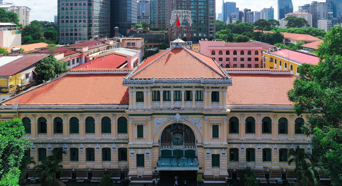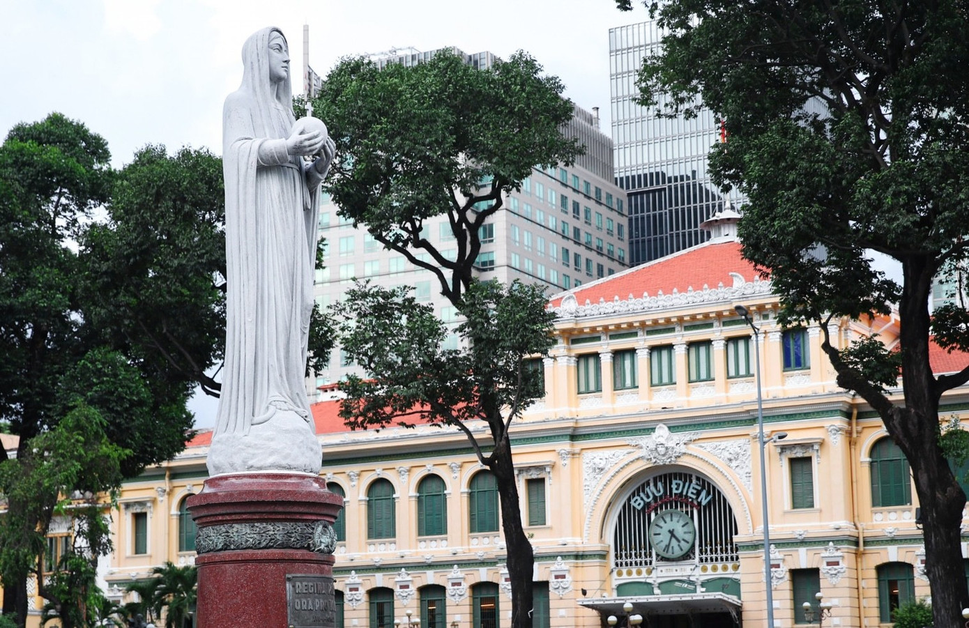 Tòa nhà Bưu điện TPHCM nhìn từ Nhà thờ Đức Bà