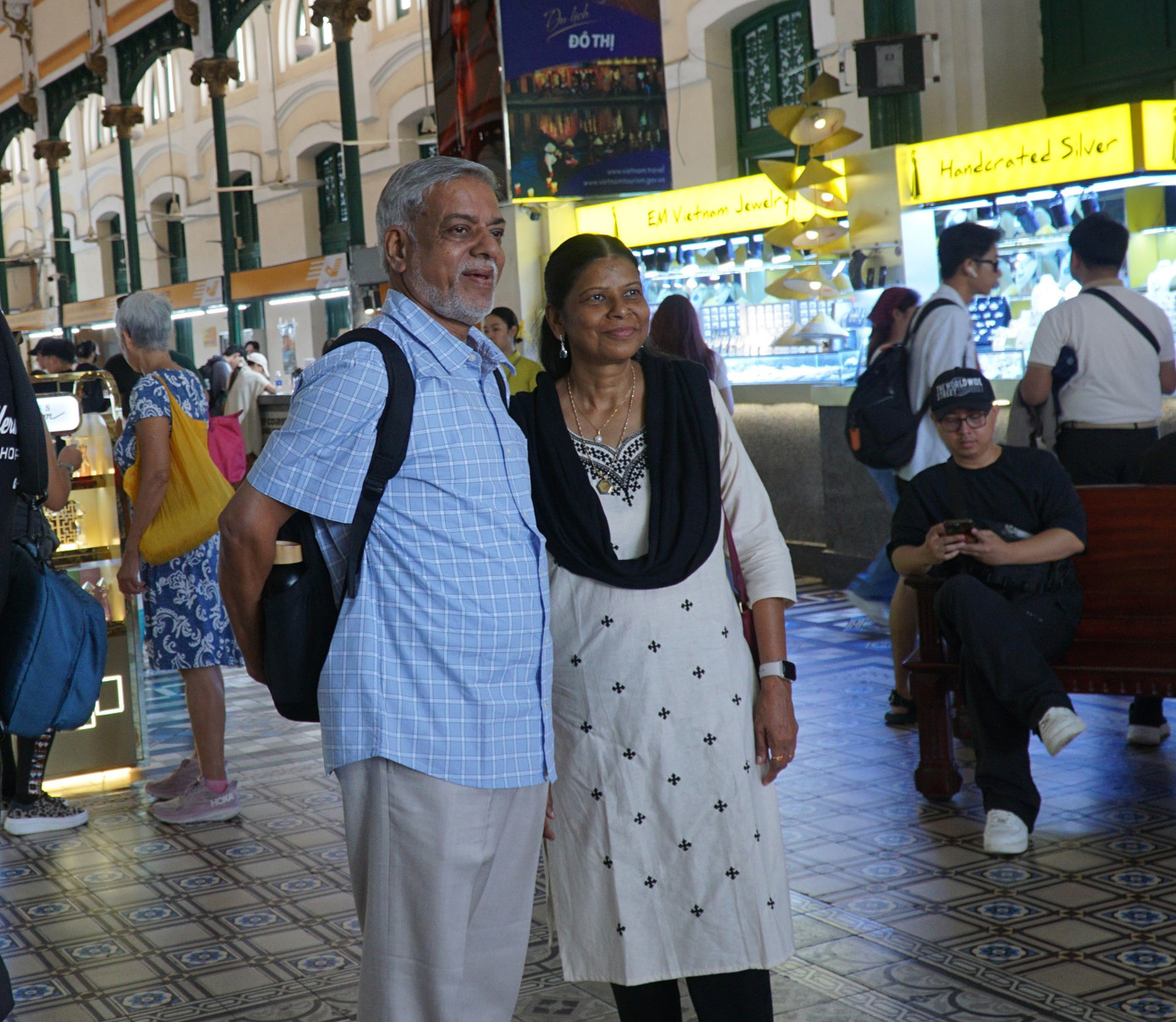 2 du khách Ấn Độ chụp ảnh lưu niệm
