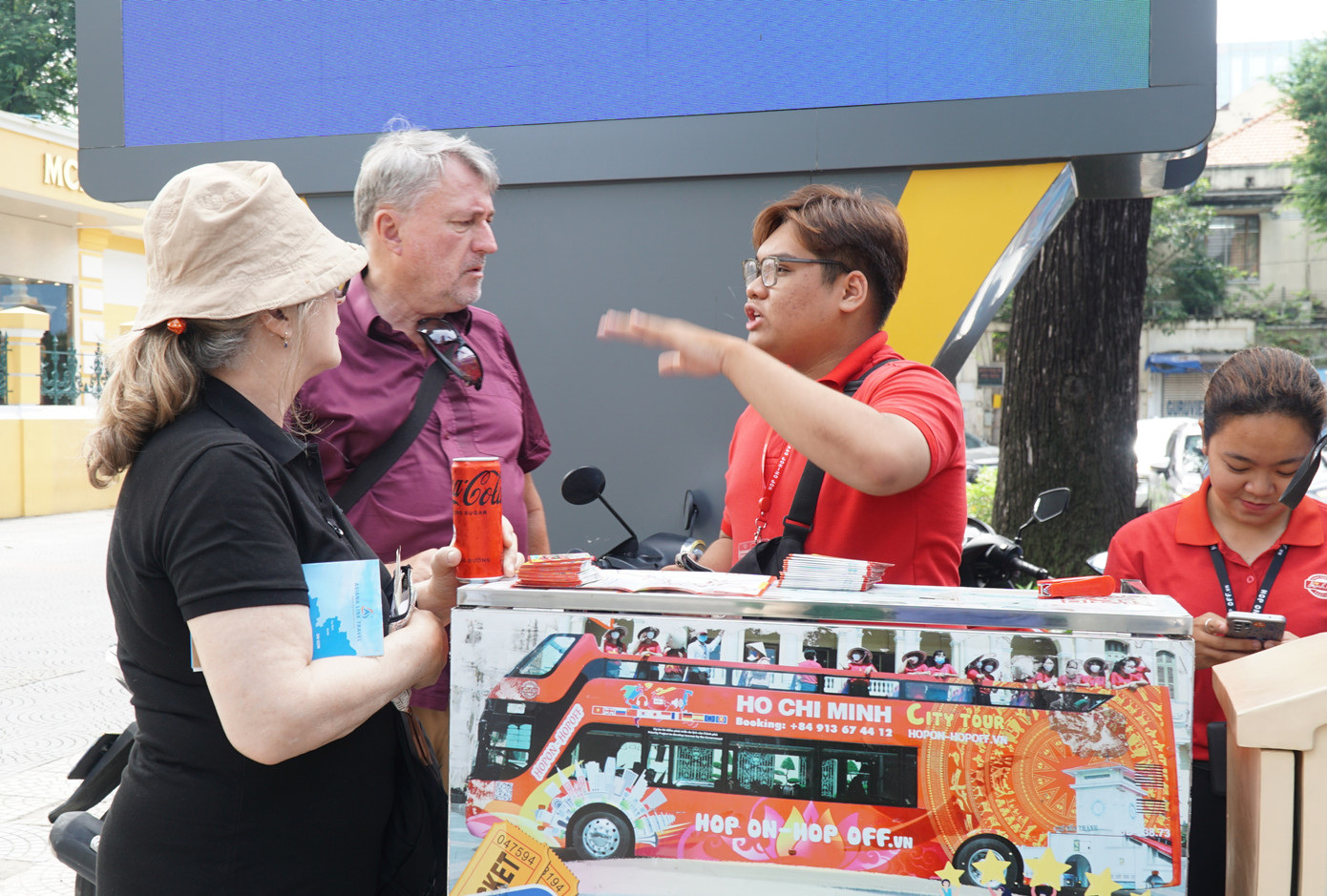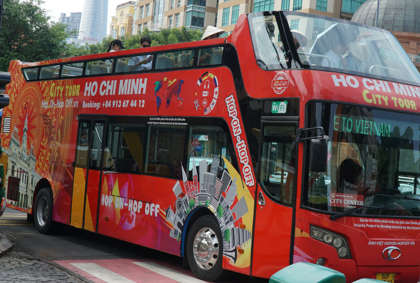 Xe buýt hai tầng đưa du khách ghé thăm tòa nhà Bưu điện