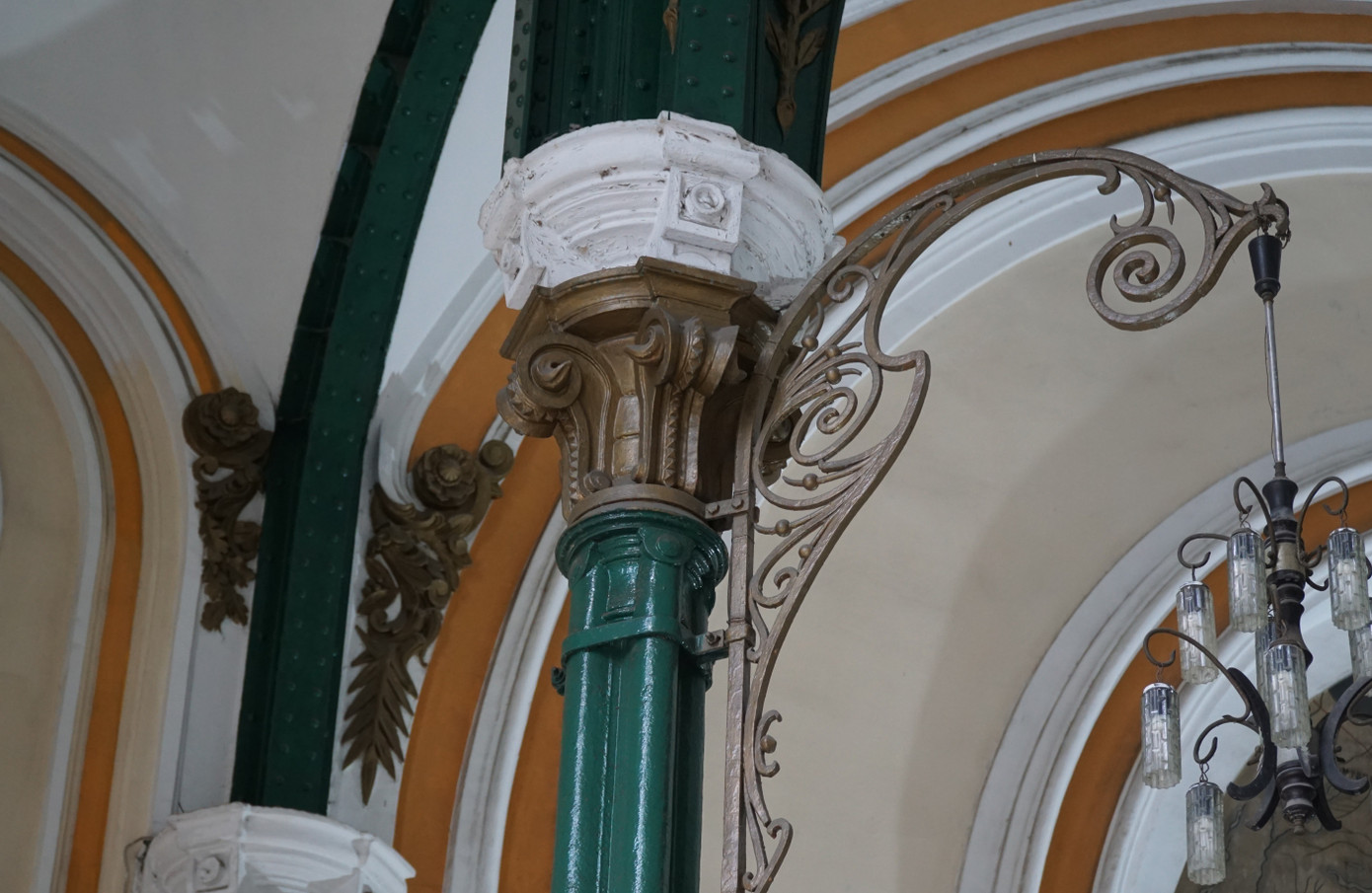 Hiện nay tòa nhà Bưu điện TPHCM vẫn lưu giữ kiến trúc cổ kính của tòa nhà hơn 130 năm tuổi như: Bên ngoài, được trang trí theo từng ô hình chữ nhật, bên trong tòa nhà là hệ thống vòm cung sát cửa chính và vòm cung dài bên trong. Vòm cung lớn được chống đỡ bởi 4 trụ sắt nằm 4 góc, mỗi cột chống đỡ 4 kèo sắt tỏa ra 4 phía. Vòm cung dài được chịu lực bởi 2 hàng trụ sắt 2 bên. Các điểm tiếp nối giữa trụ và kèo sắt được thiết kế công phu, chạm khắc thành những chi tiết có hoa văn rất tinh xảo.