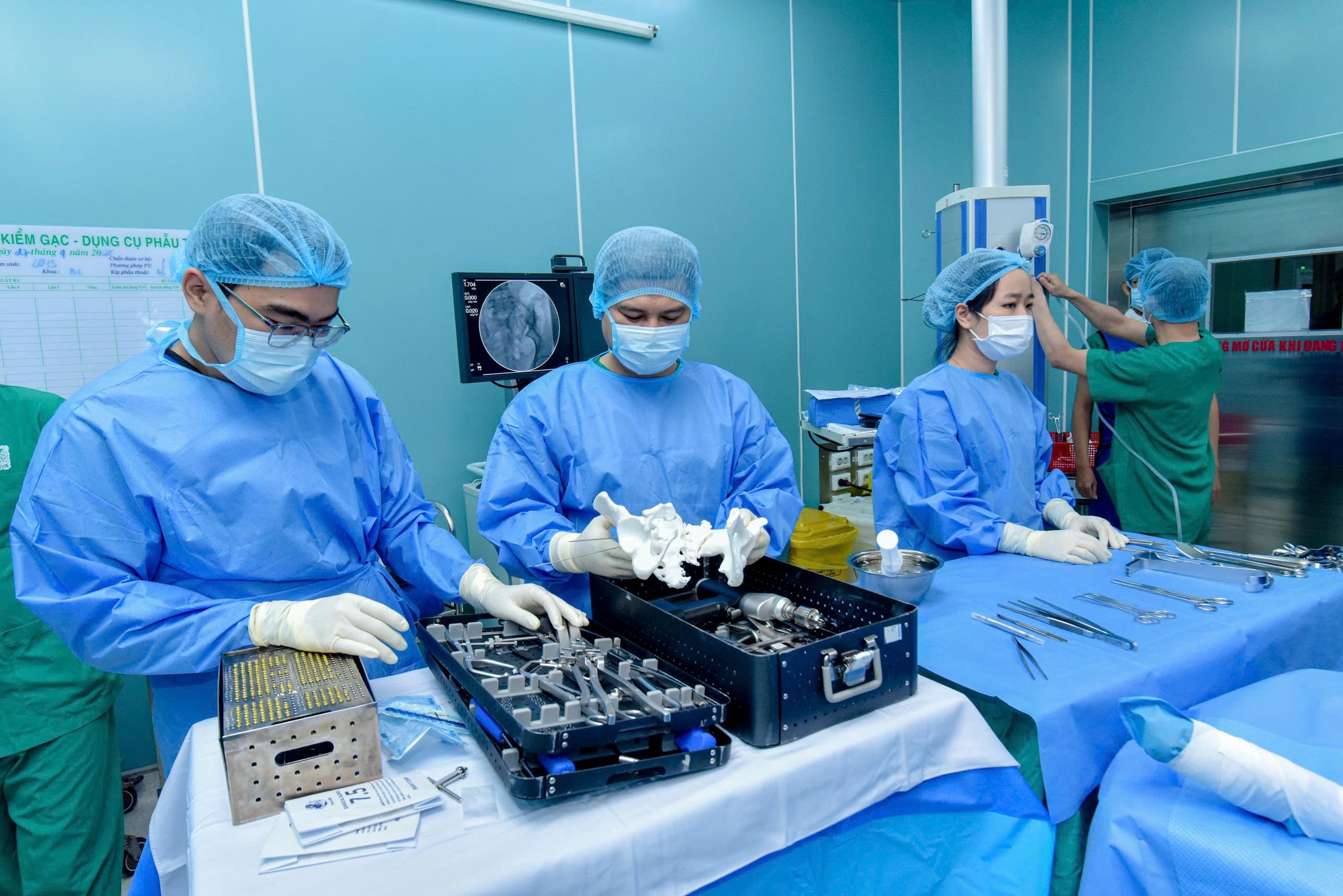 Ngay trong đêm, bệnh nhân được chuyển khẩn vào phòng mổ trong tình trạng nguy kịch. Các bác sĩ phối hợp liên chuyên khoa, nhanh chóng cố định ngoài khung chậu để ổn định xương gãy, kiểm soát chảy máu và ngăn tổn thương lan rộng đến nội tạng. Song song đó, đội phẫu thuật tiết niệu và sản phụ khoa khâu phục hồi bàng quang cùng buồng trứng phải, nỗ lực giành lại sự sống cho bệnh nhân.