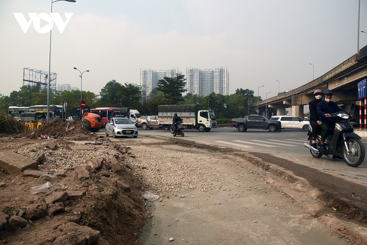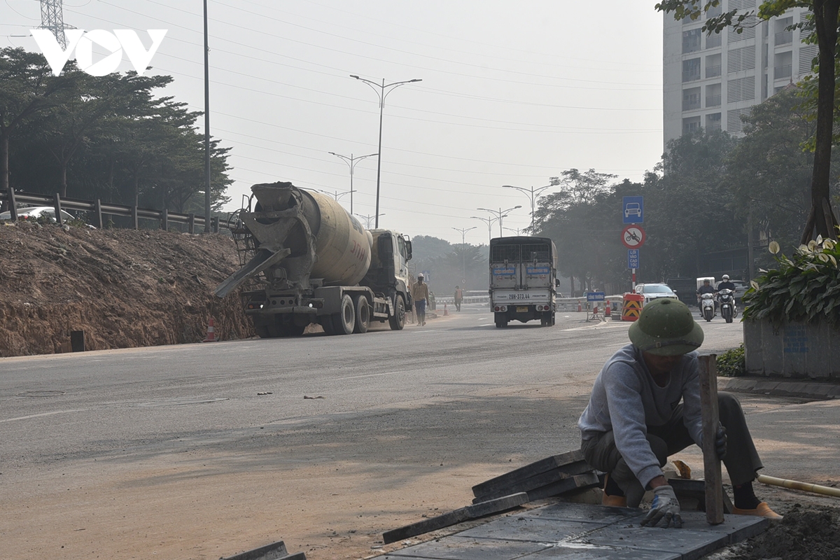 Ghi nhận của phóng viên, dự án đang thực hiện xén dải phân cách để mở rộng mặt đường kết nối đường Đỗ Mười với đường Cao tốc Pháp Vân - Cầu Giẽ;