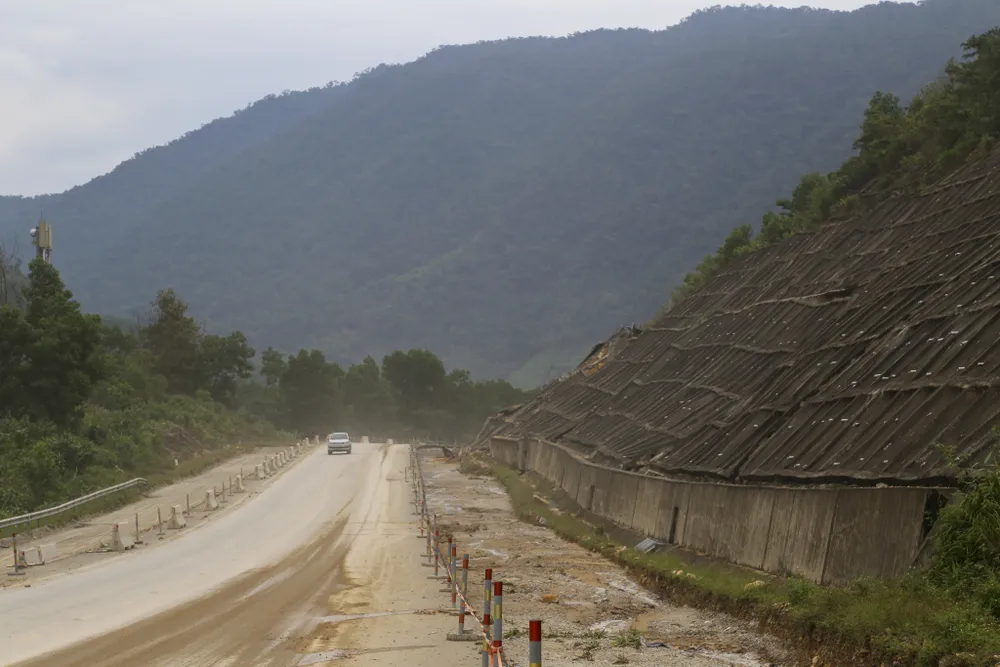 Một vị trí sạt lở nghiêm trọng dọc tuyến La Sơn - Hòa Liên, ảnh hưởng lớn đến dự án mở rộng tuyến cao tốc này.